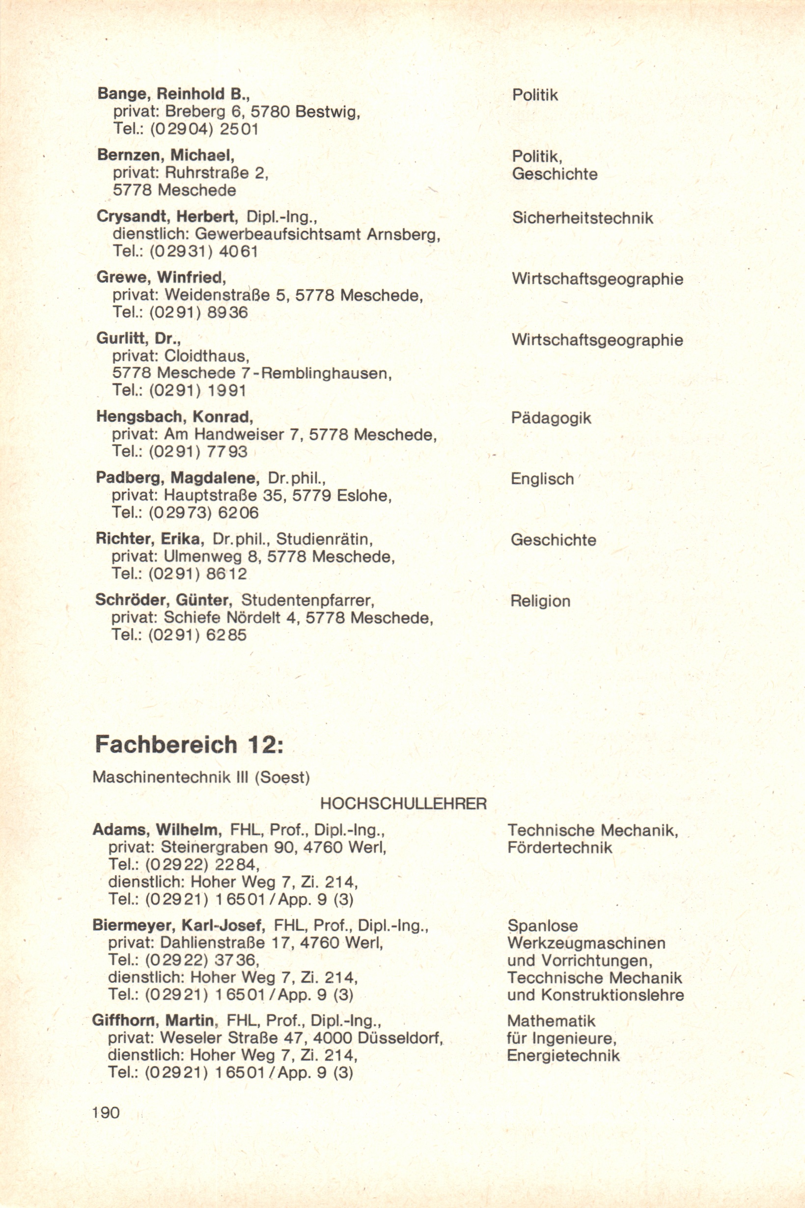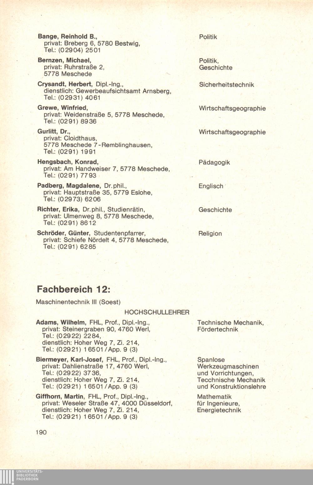 Personal- und Vorlesungsverzeichnis für die Gesamthochschule Paderborn