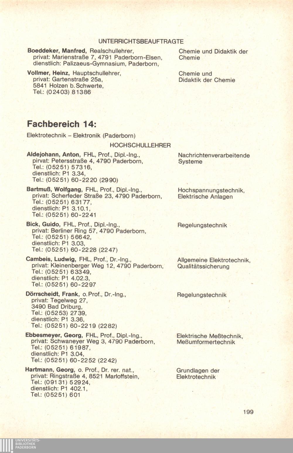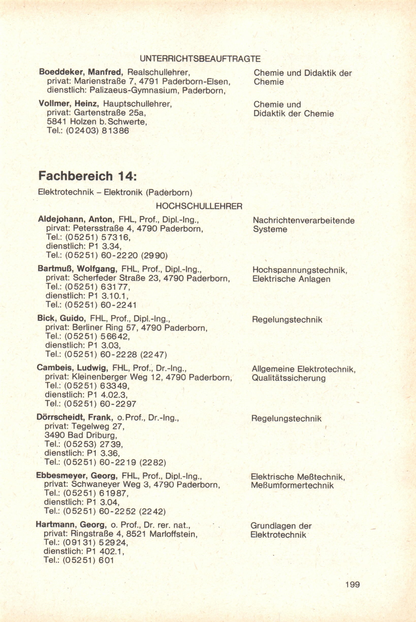 Personal- und Vorlesungsverzeichnis für die Gesamthochschule Paderborn