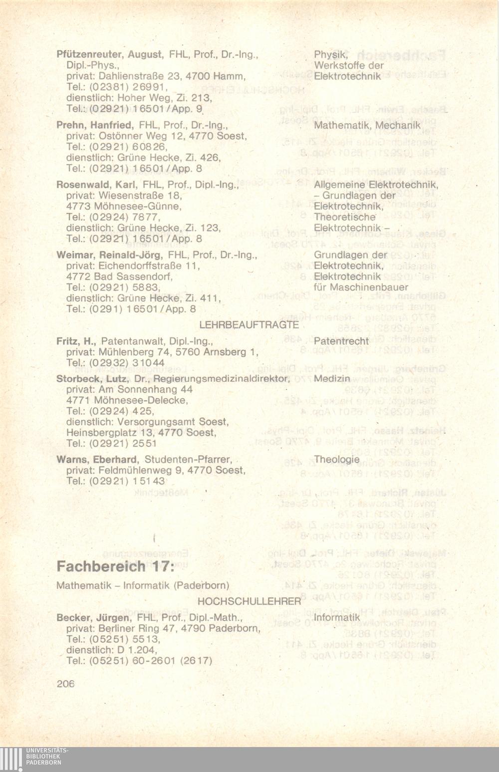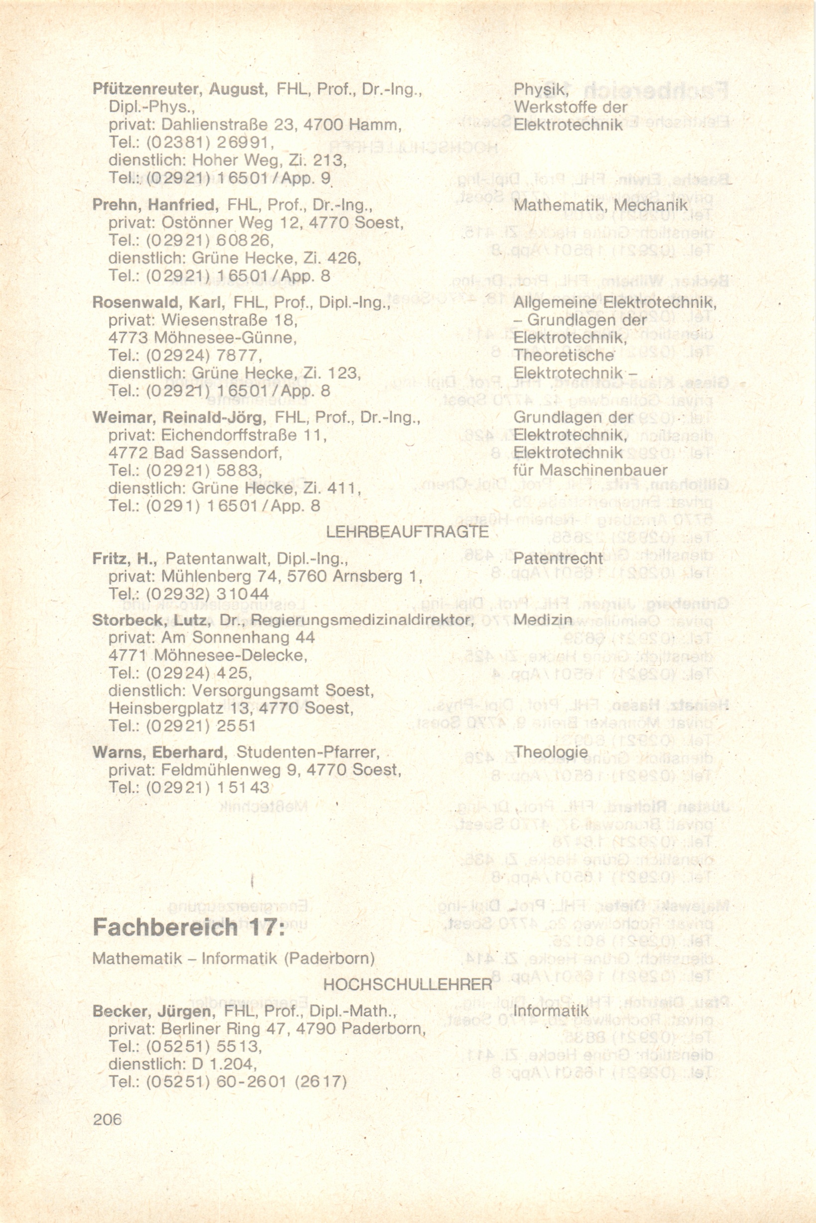 Personal- und Vorlesungsverzeichnis für die Gesamthochschule Paderborn