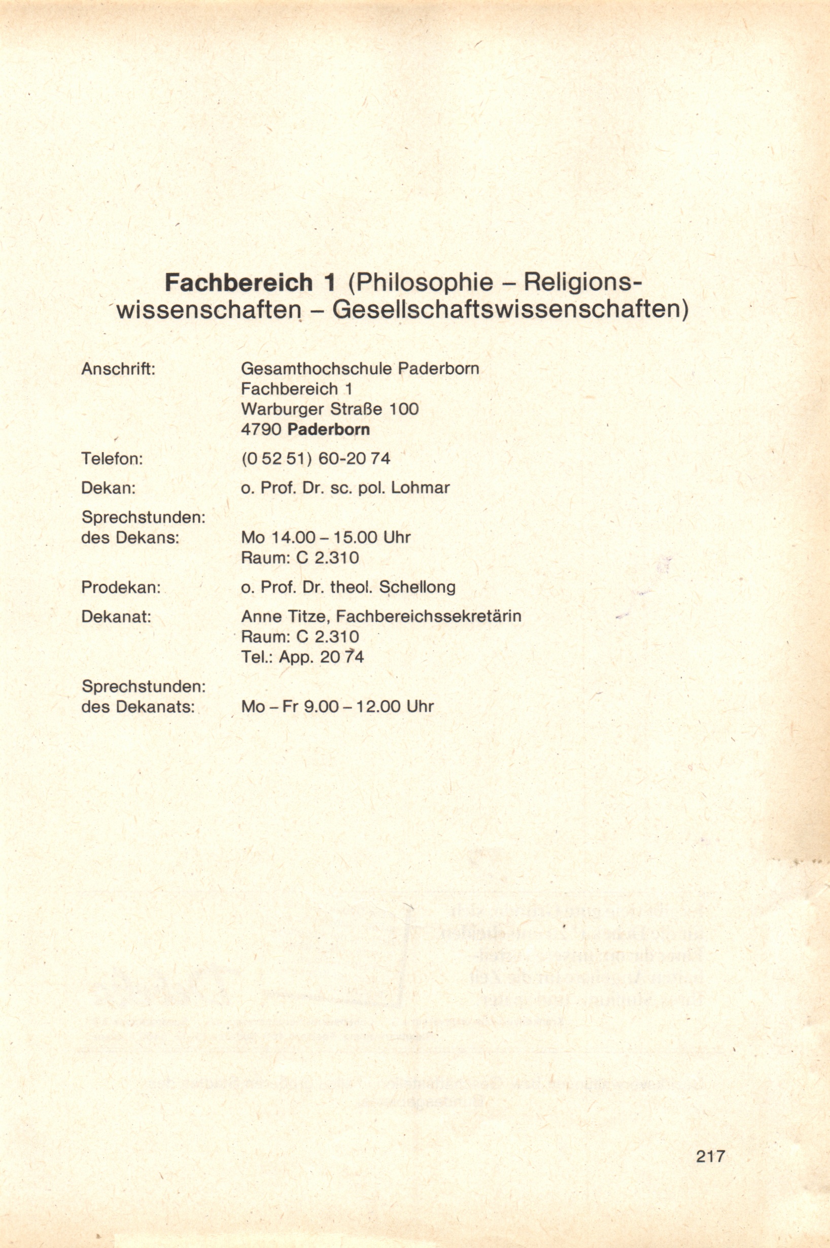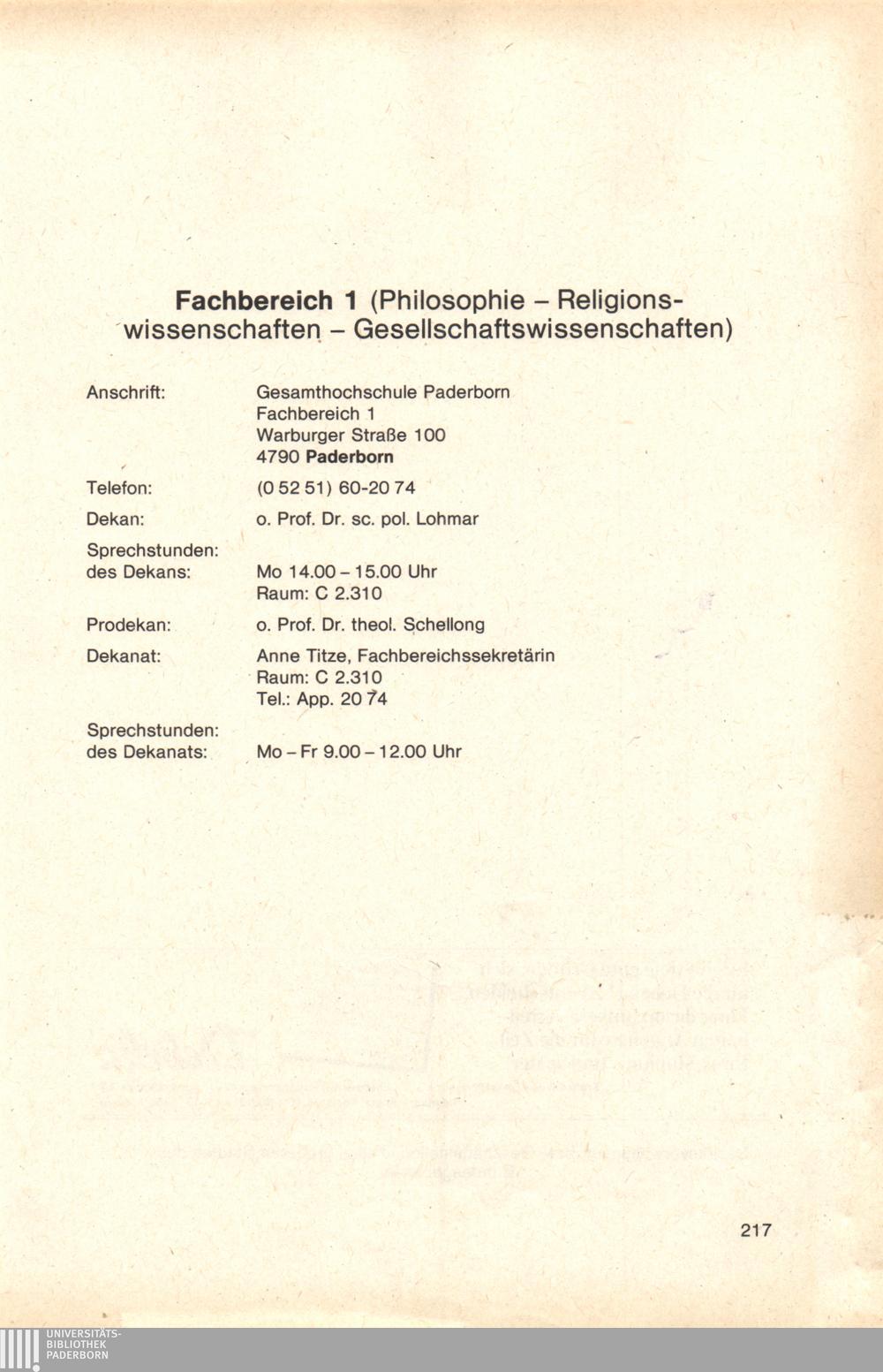 Personal- und Vorlesungsverzeichnis für die Gesamthochschule Paderborn