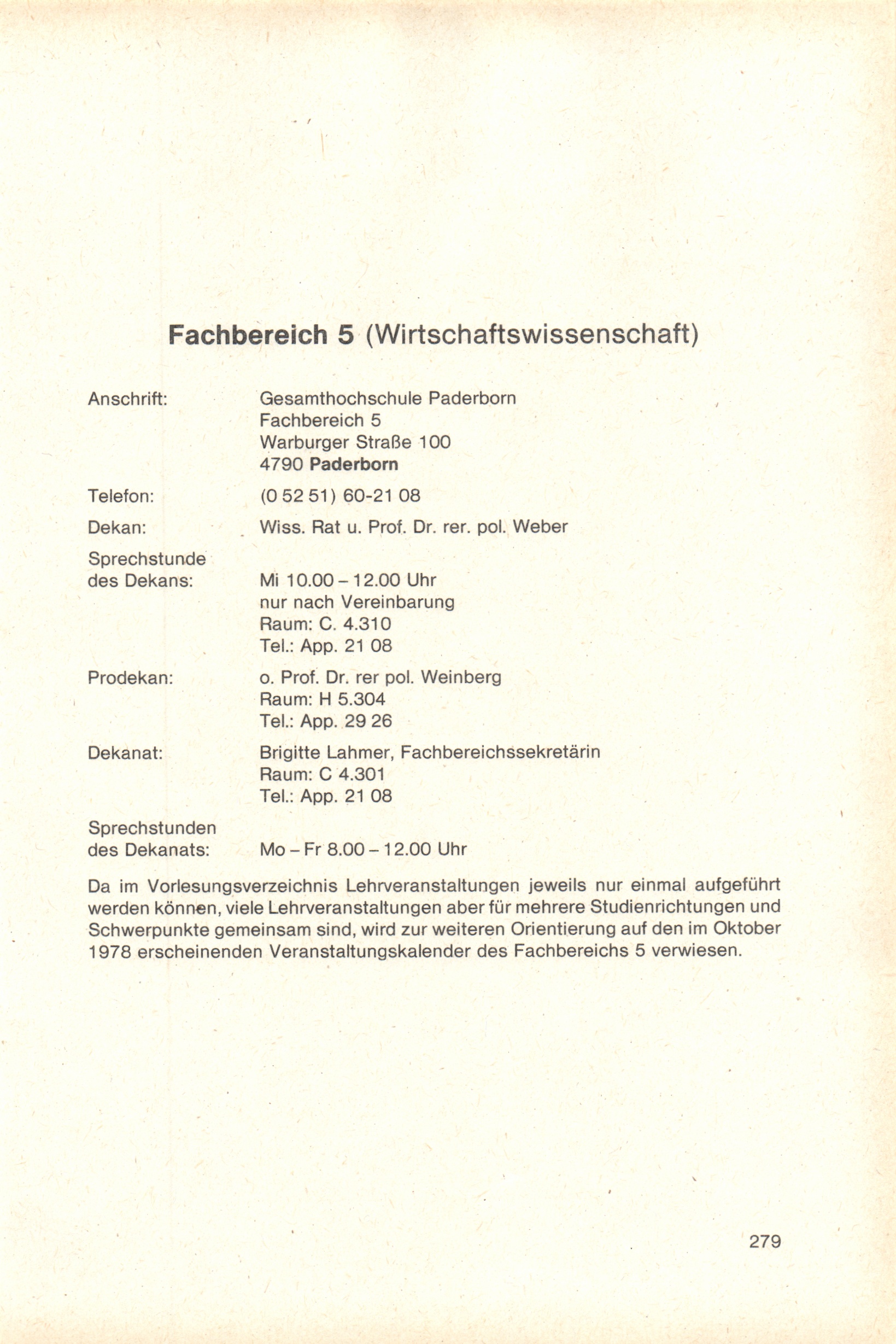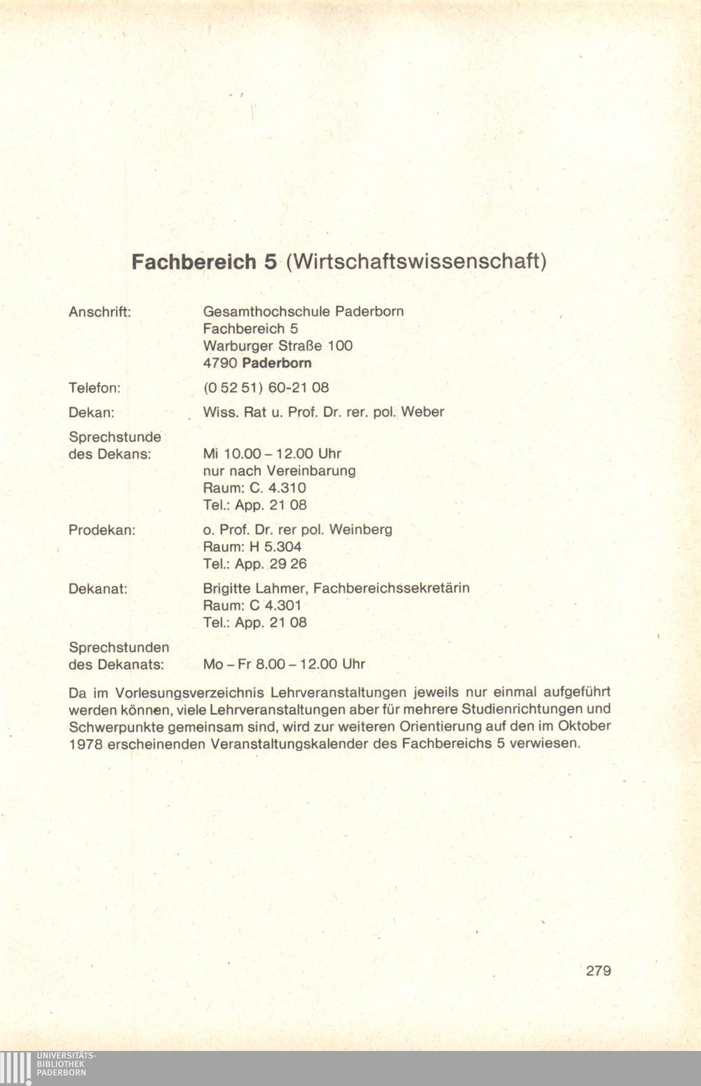 Personal- und Vorlesungsverzeichnis für die Gesamthochschule Paderborn
