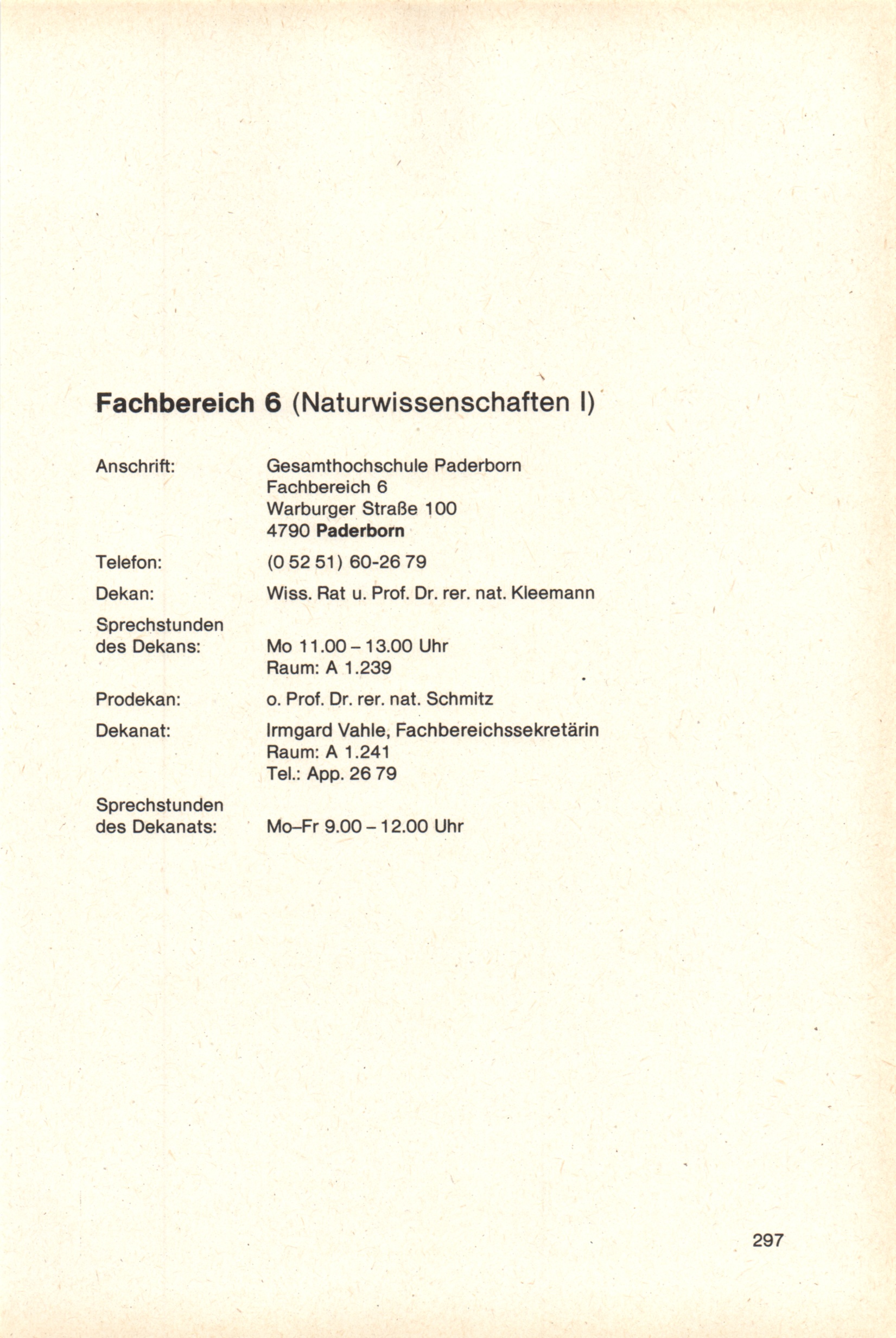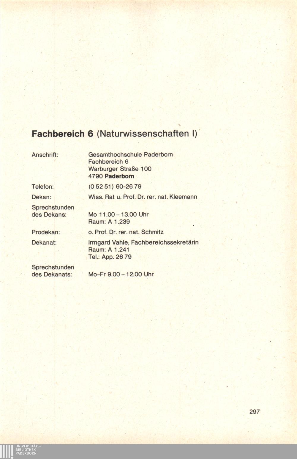 Personal- und Vorlesungsverzeichnis für die Gesamthochschule Paderborn