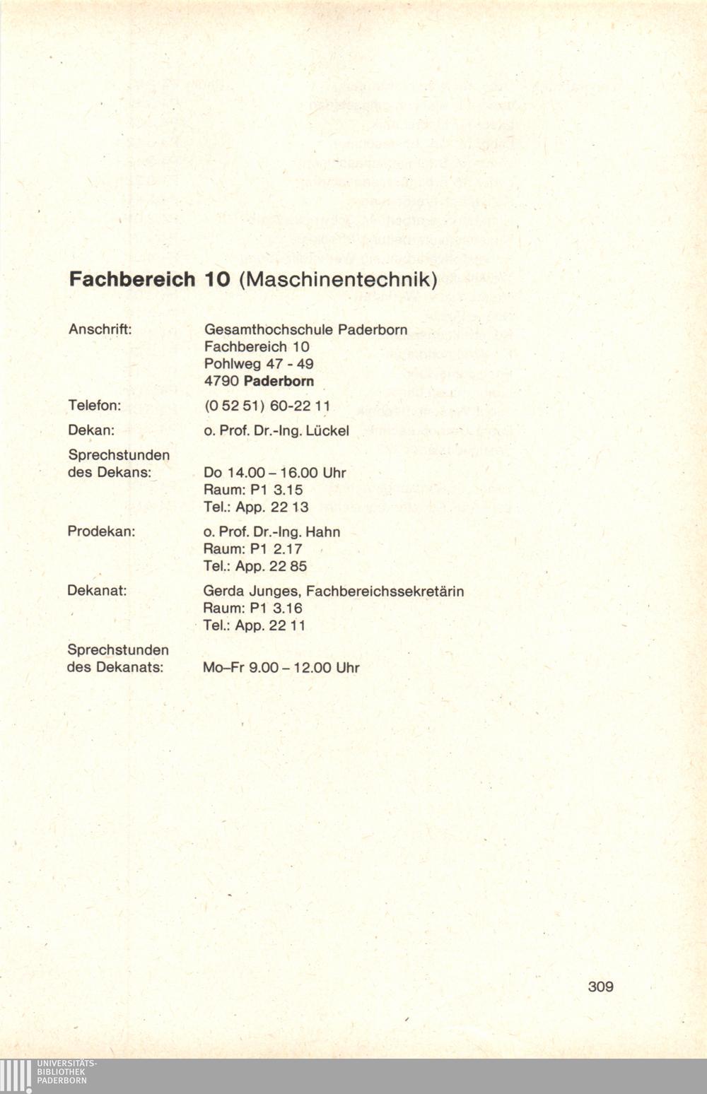 Personal- und Vorlesungsverzeichnis für die Gesamthochschule Paderborn