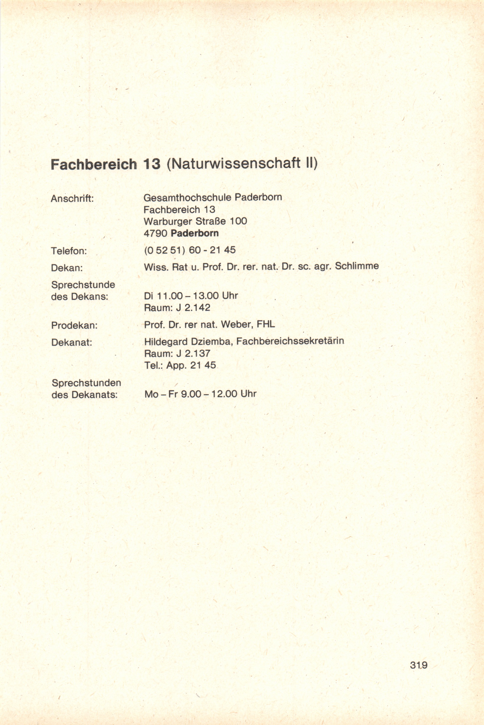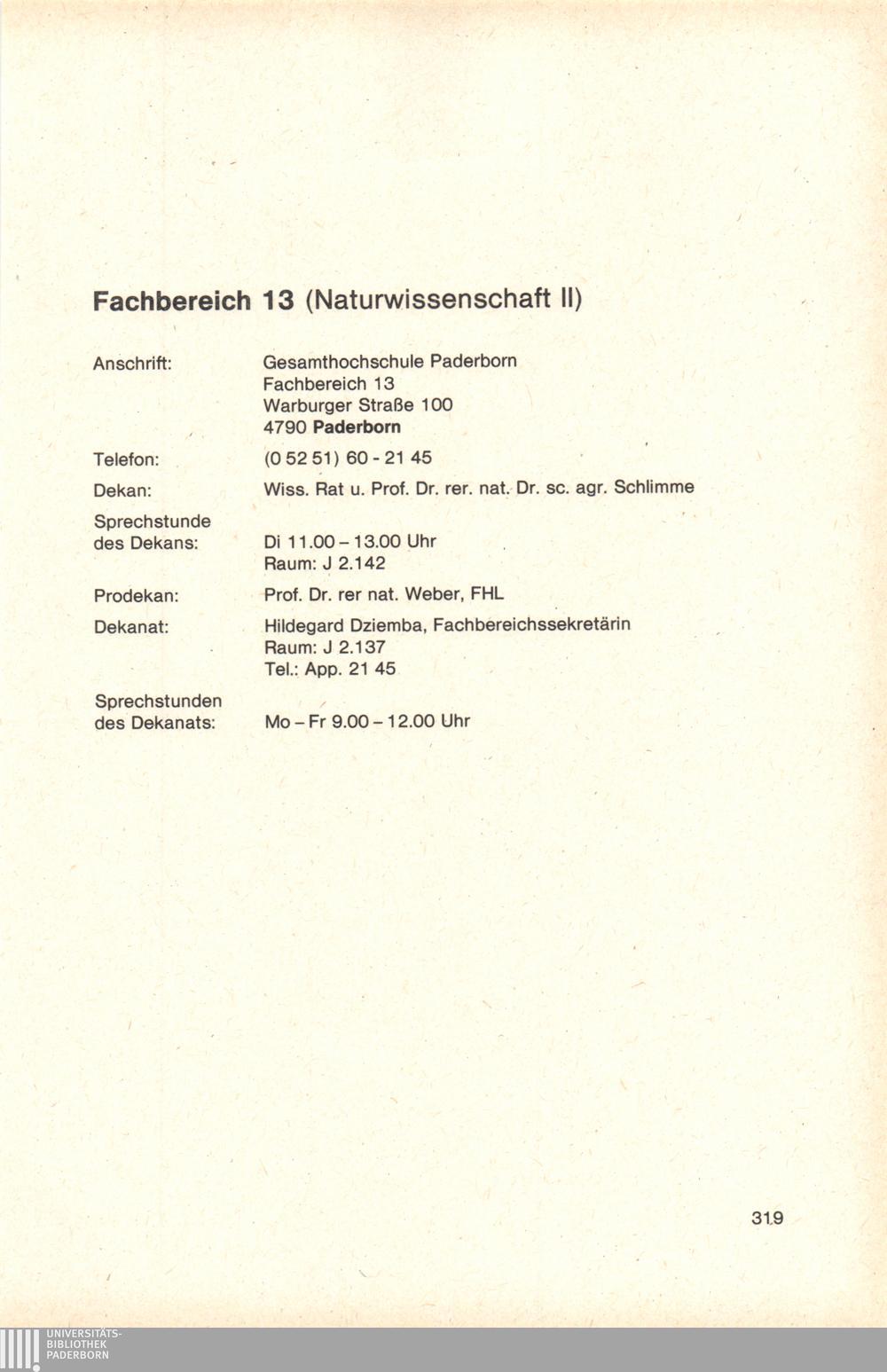 Personal- und Vorlesungsverzeichnis für die Gesamthochschule Paderborn