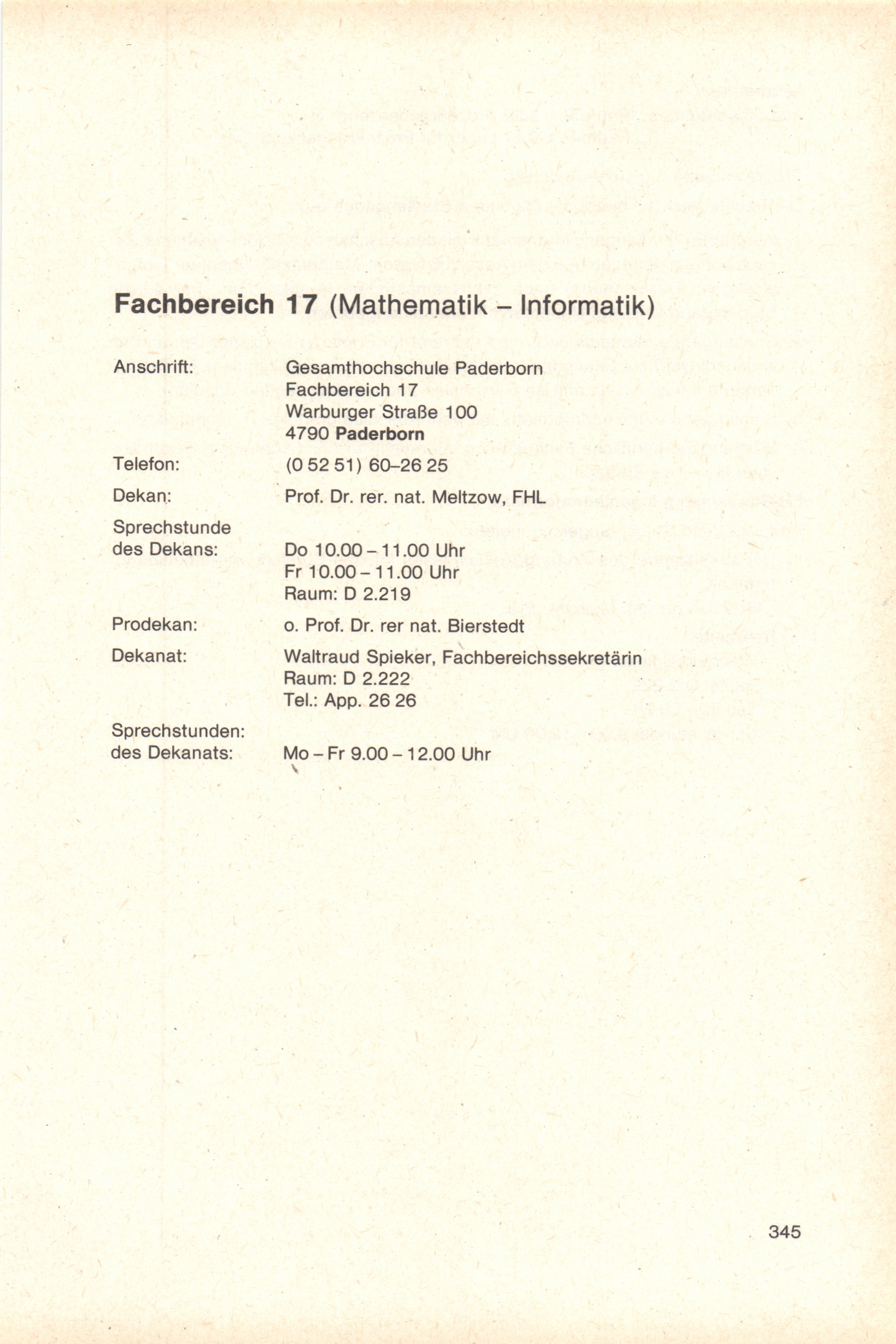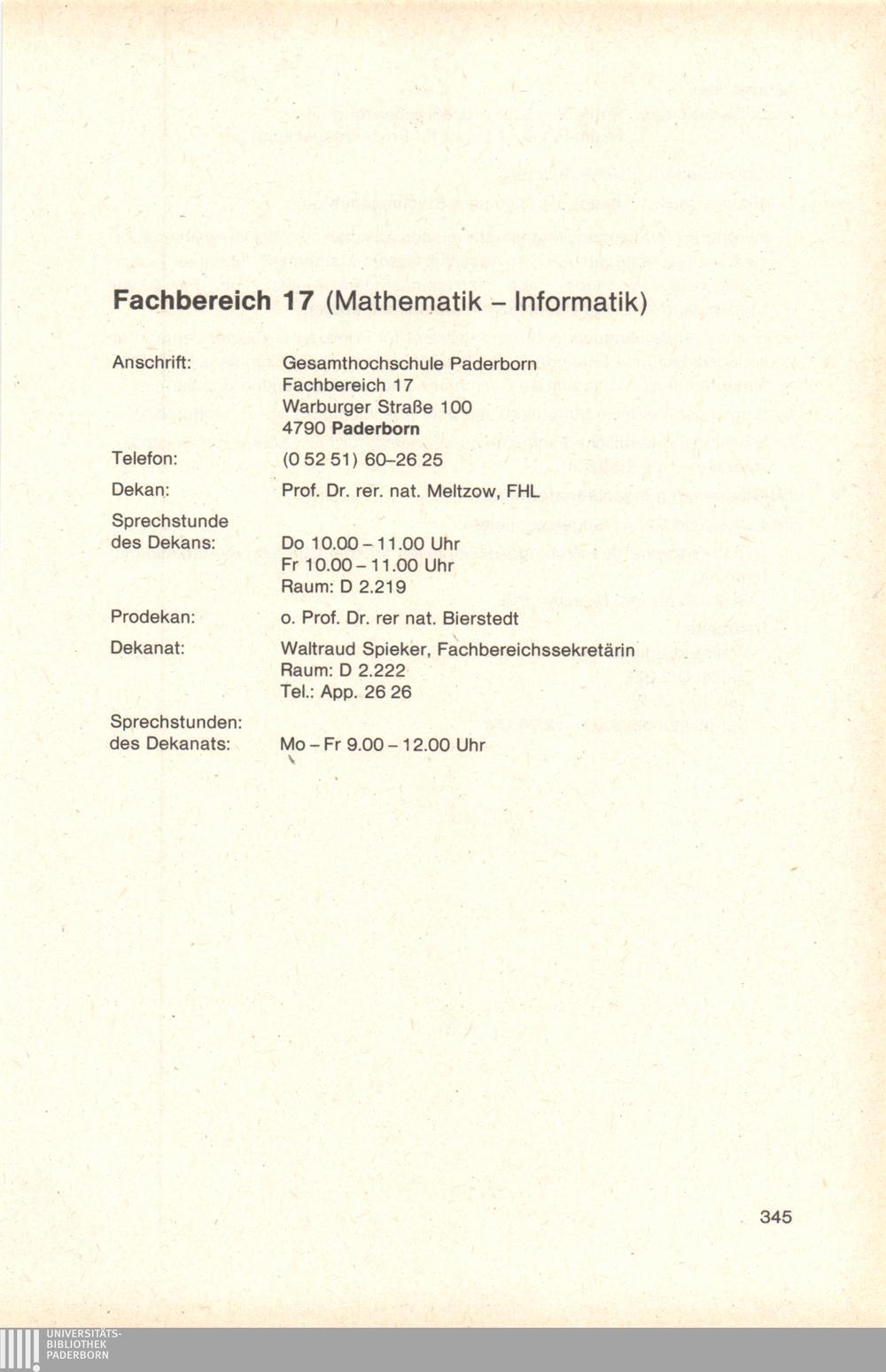 Personal- und Vorlesungsverzeichnis für die Gesamthochschule Paderborn