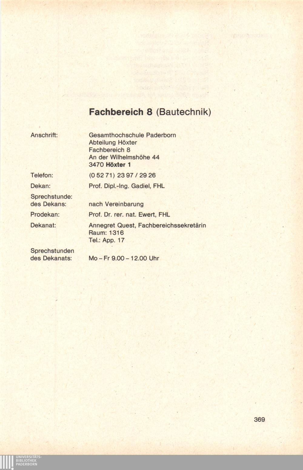 Personal- und Vorlesungsverzeichnis für die Gesamthochschule Paderborn