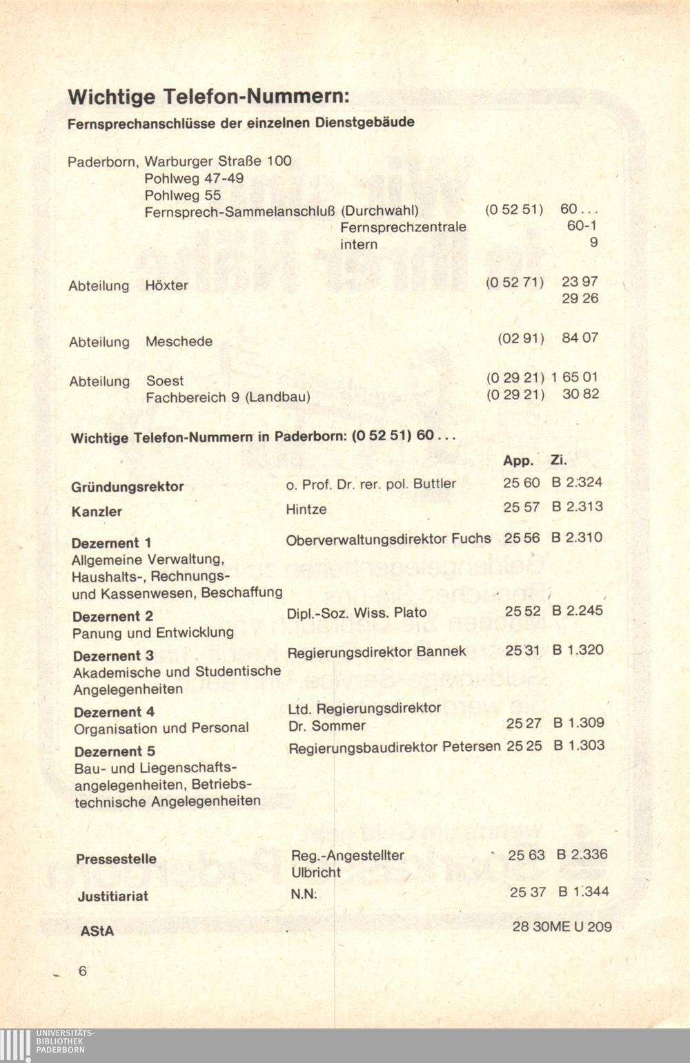 Personal- und Vorlesungsverzeichnis für die Gesamthochschule Paderborn