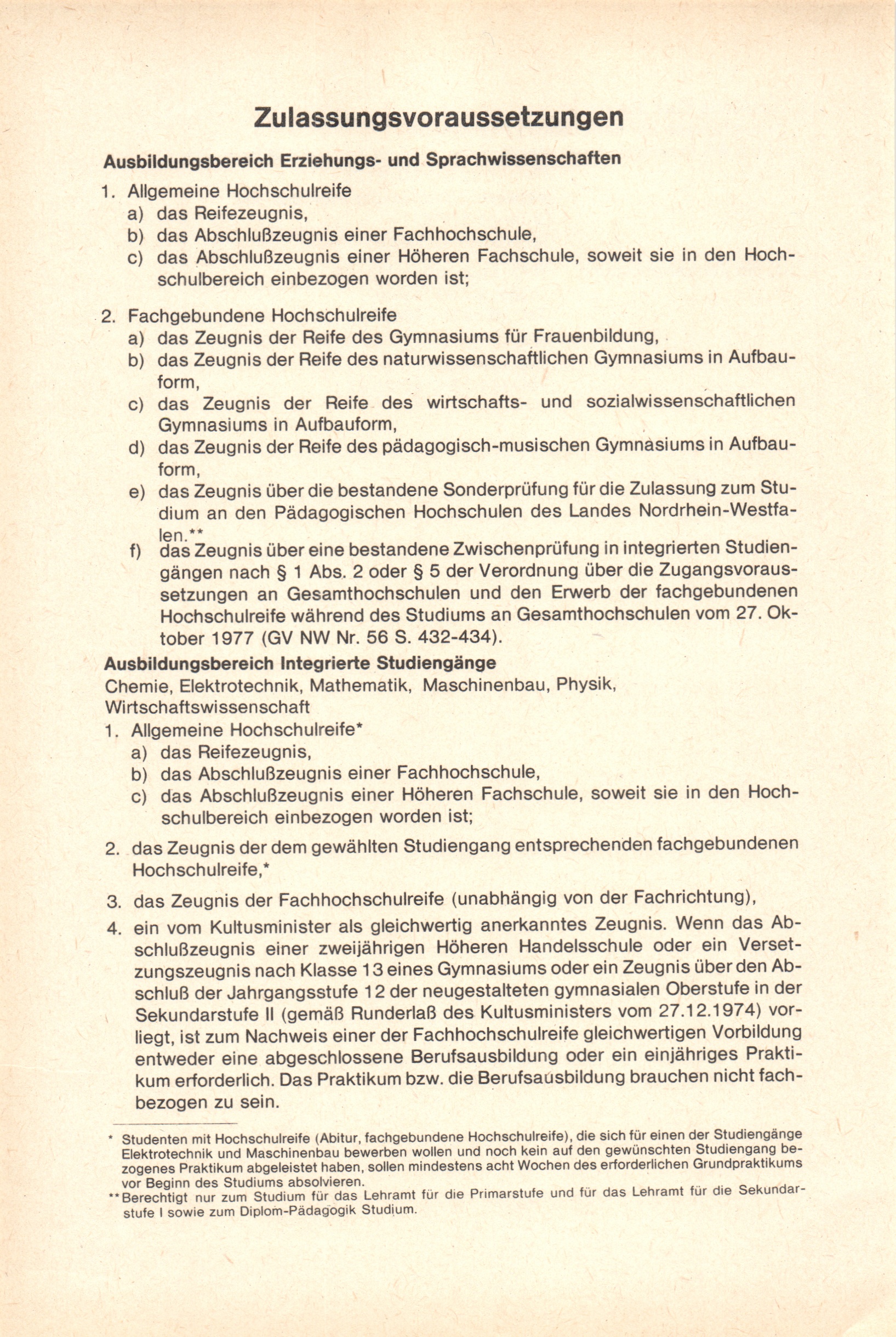 Zulassungsvoraussetzungen