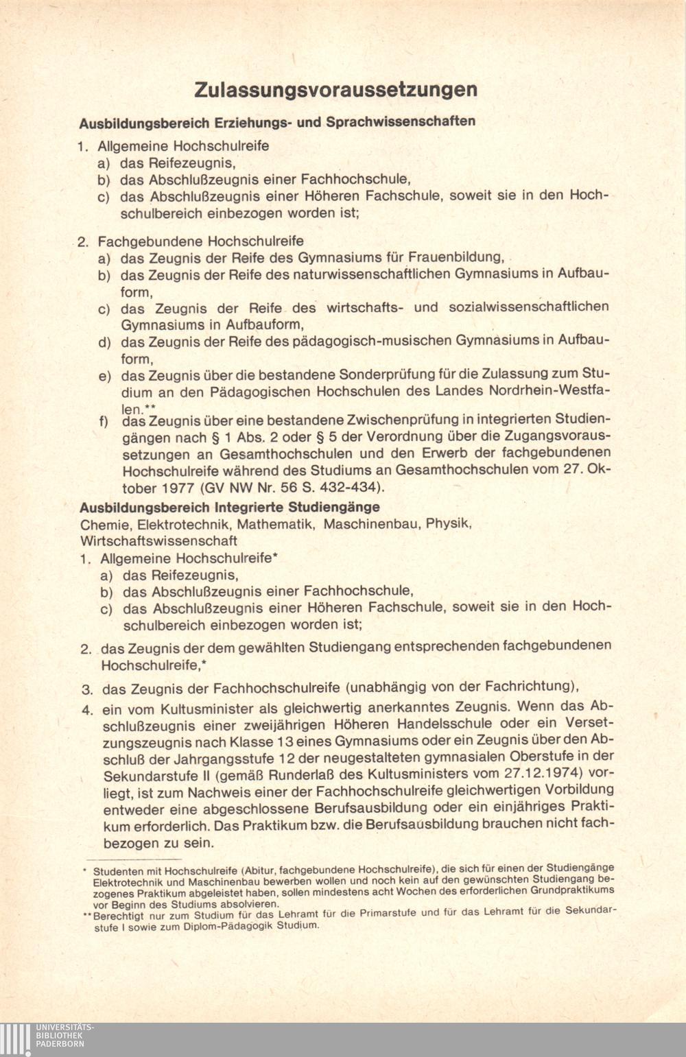 Personal- und Vorlesungsverzeichnis für die Gesamthochschule Paderborn