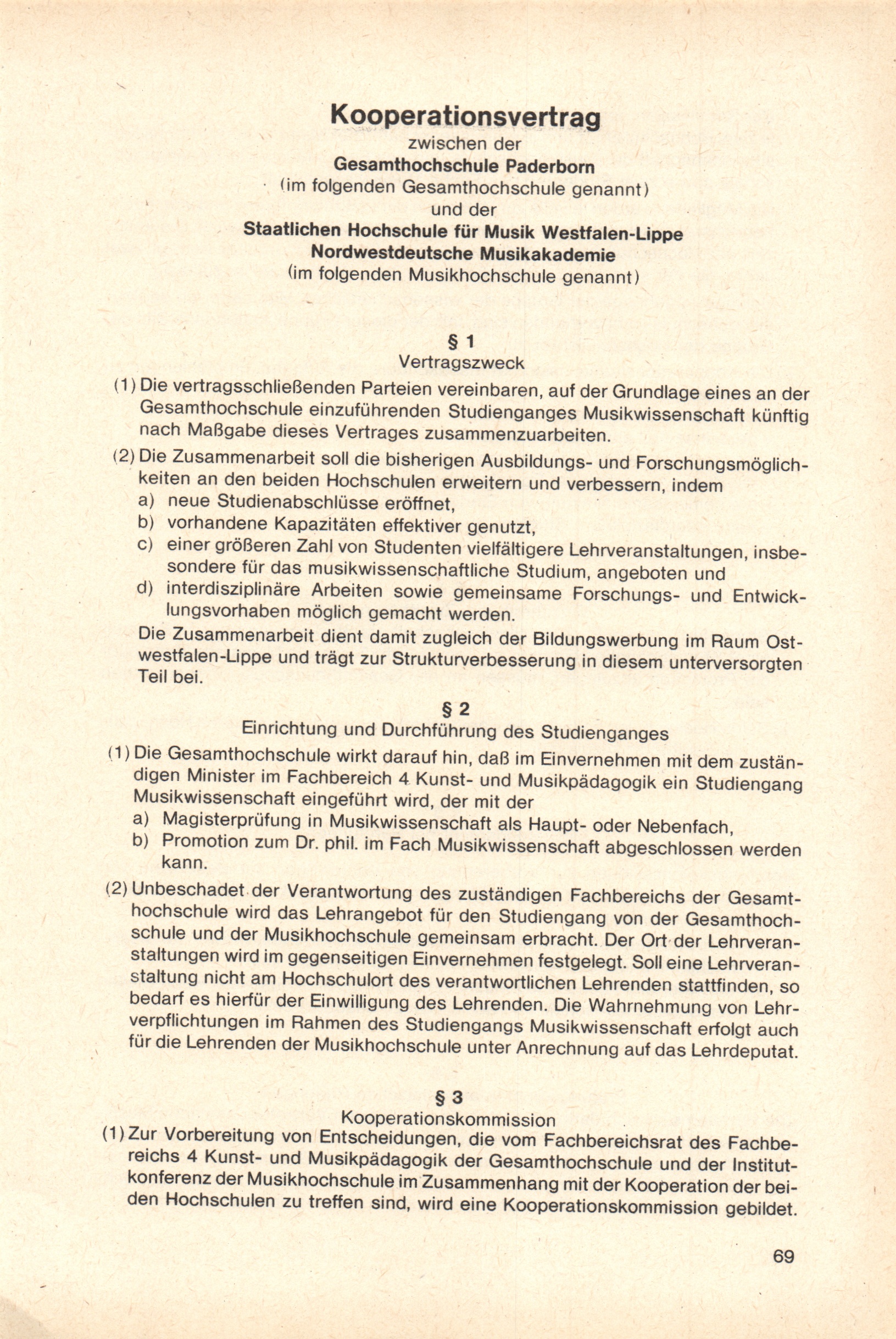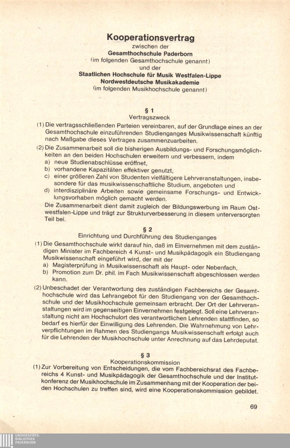 Kooperationsvertrag zwischen der Gesamthochschule Paderborn und der Staatlichen Hochschule[...]
