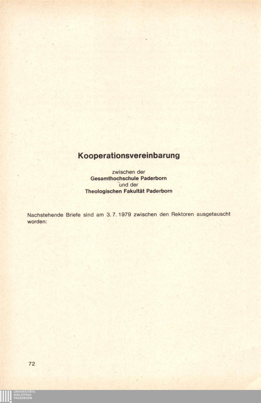 Kooperationsvereinbarung zwischen der Gesamthochschule Paderborn und der Katholischen[...]
