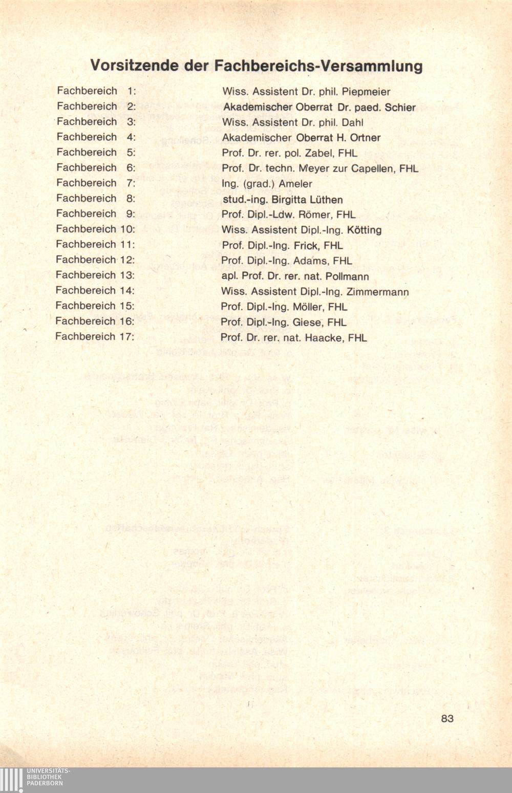 Personal- und Vorlesungsverzeichnis für die Gesamthochschule Paderborn