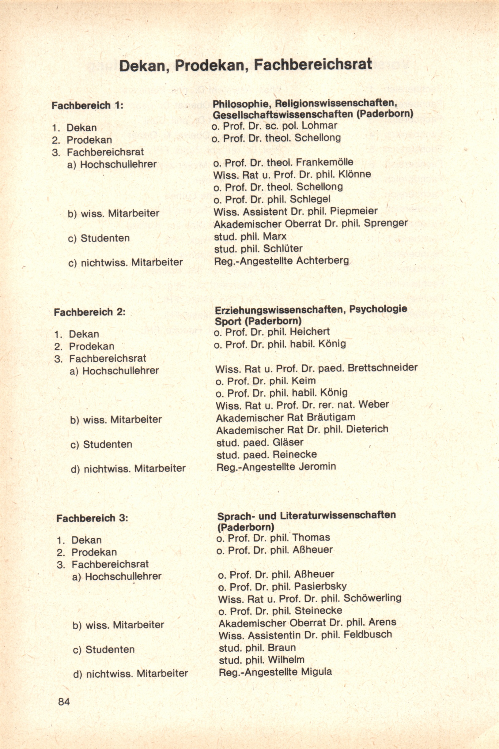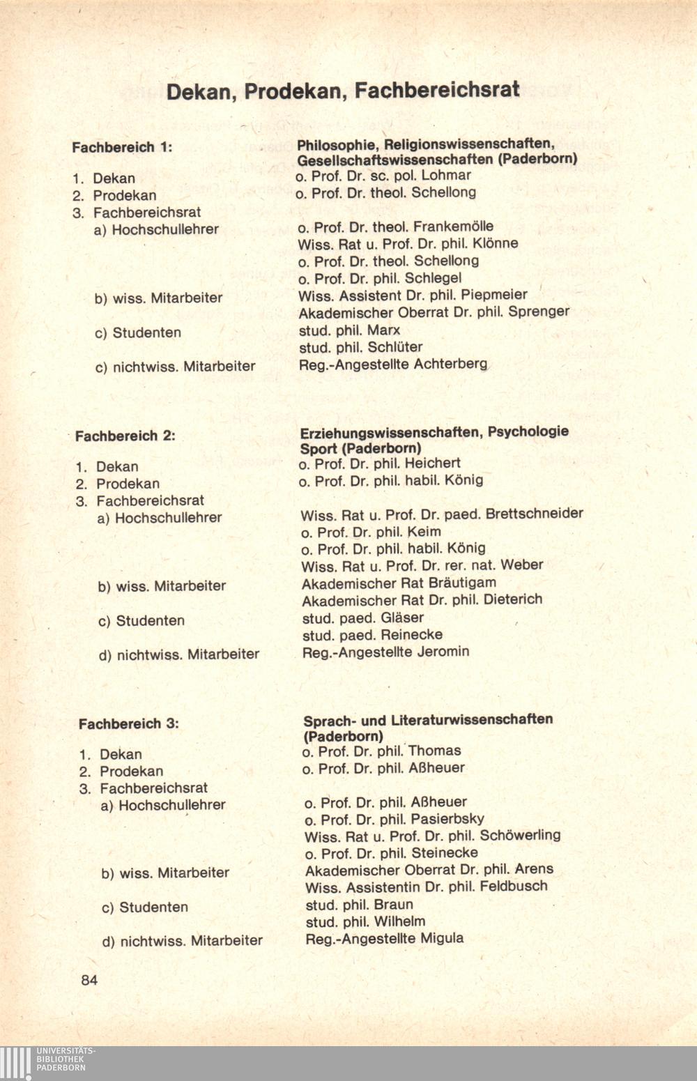 Personal- und Vorlesungsverzeichnis für die Gesamthochschule Paderborn