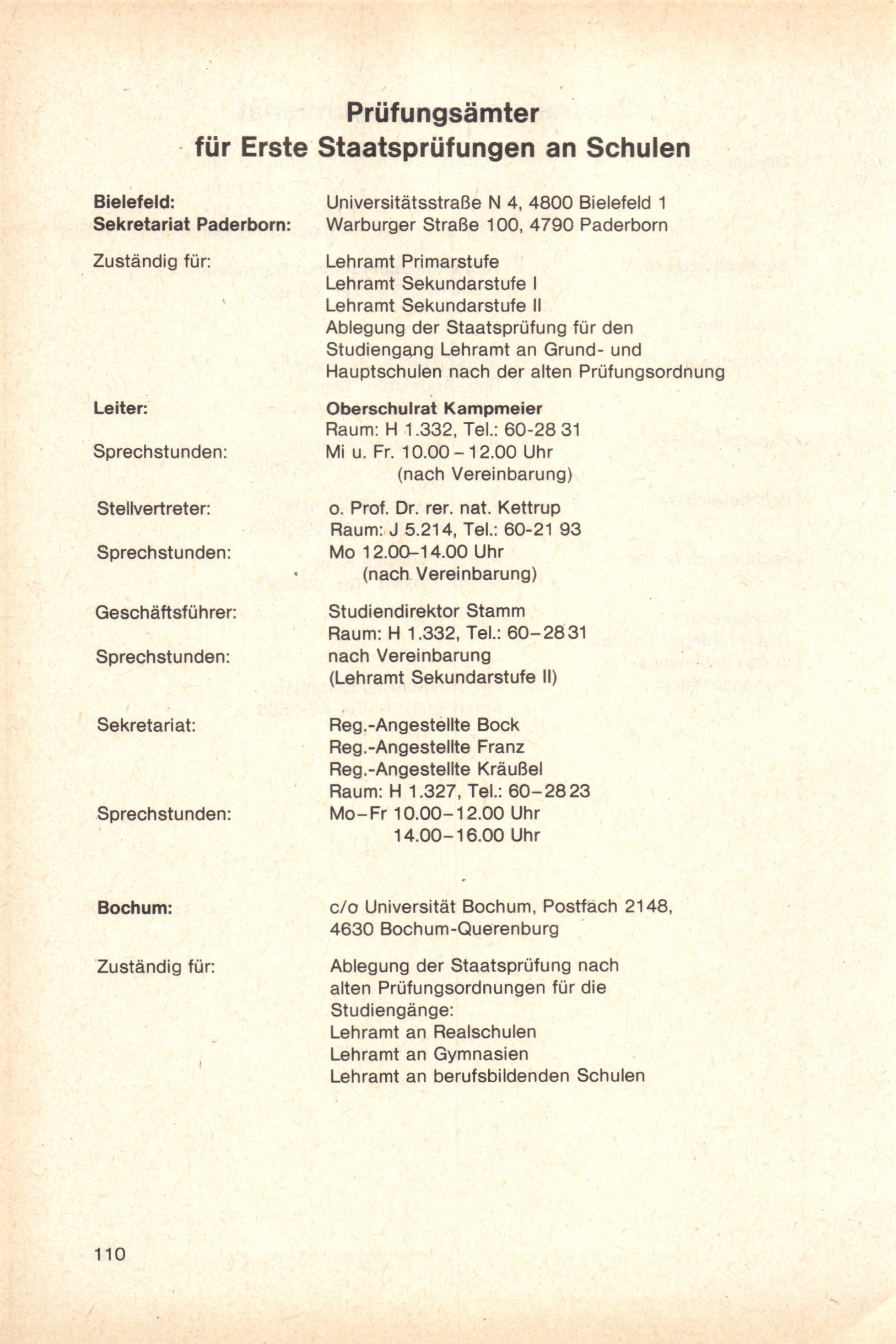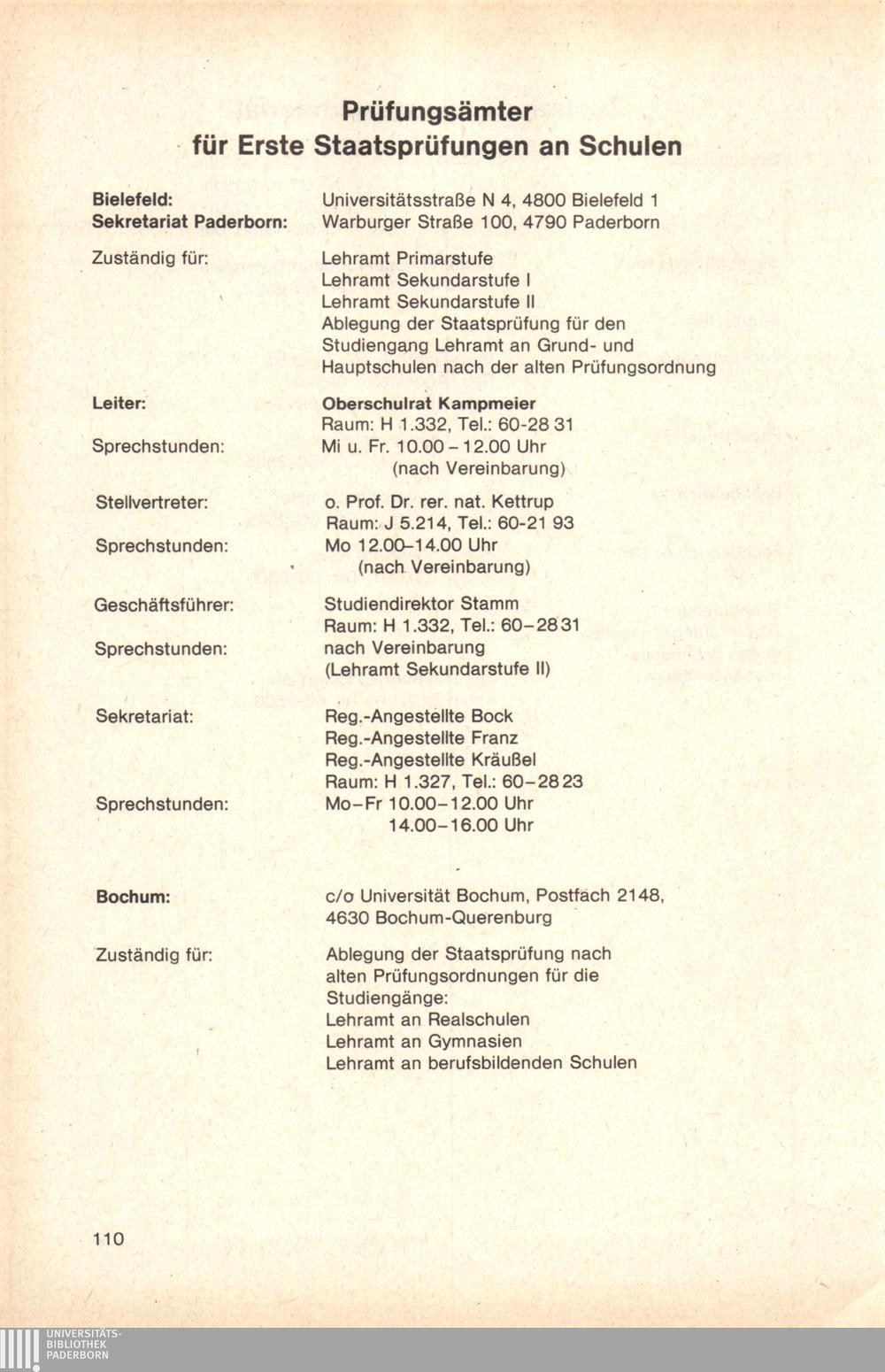 Personal- und Vorlesungsverzeichnis für die Gesamthochschule Paderborn