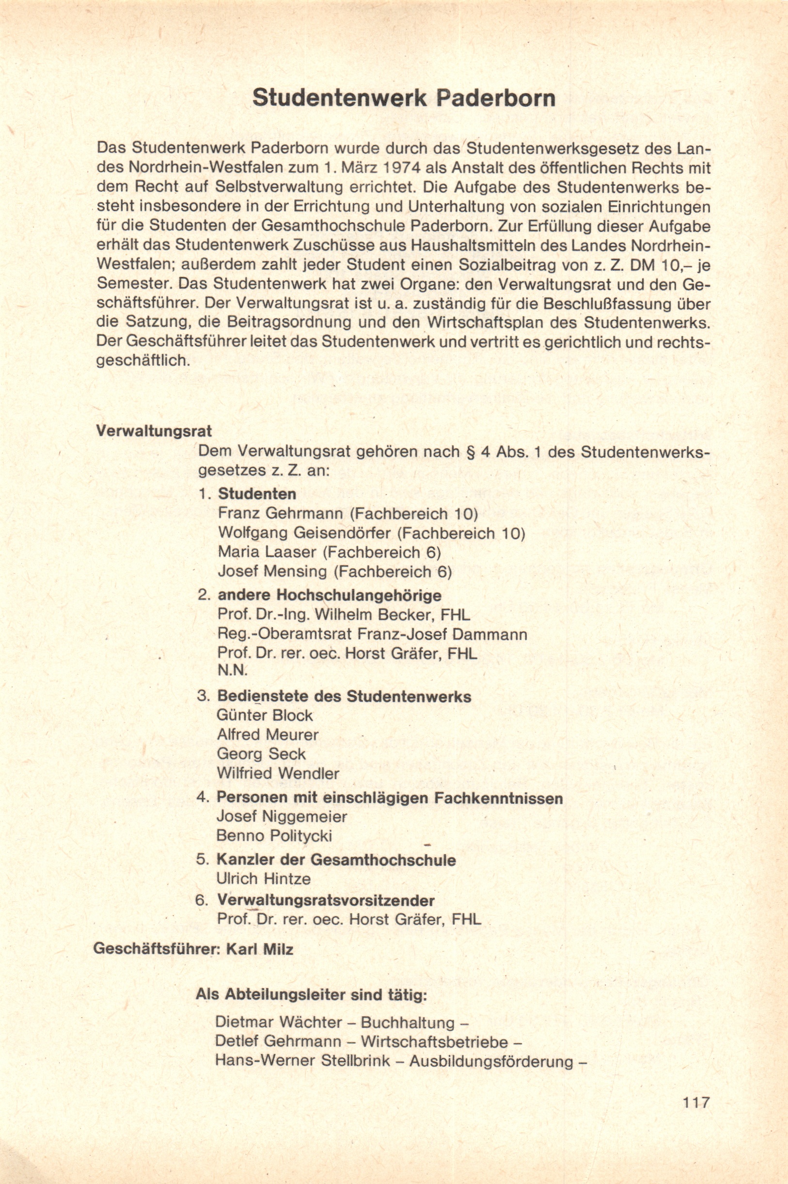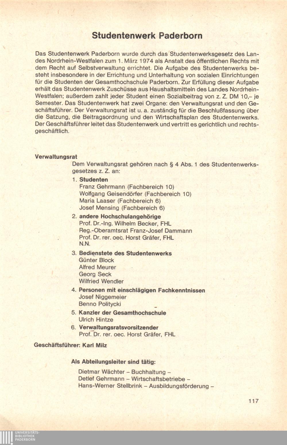 Personal- und Vorlesungsverzeichnis für die Gesamthochschule Paderborn