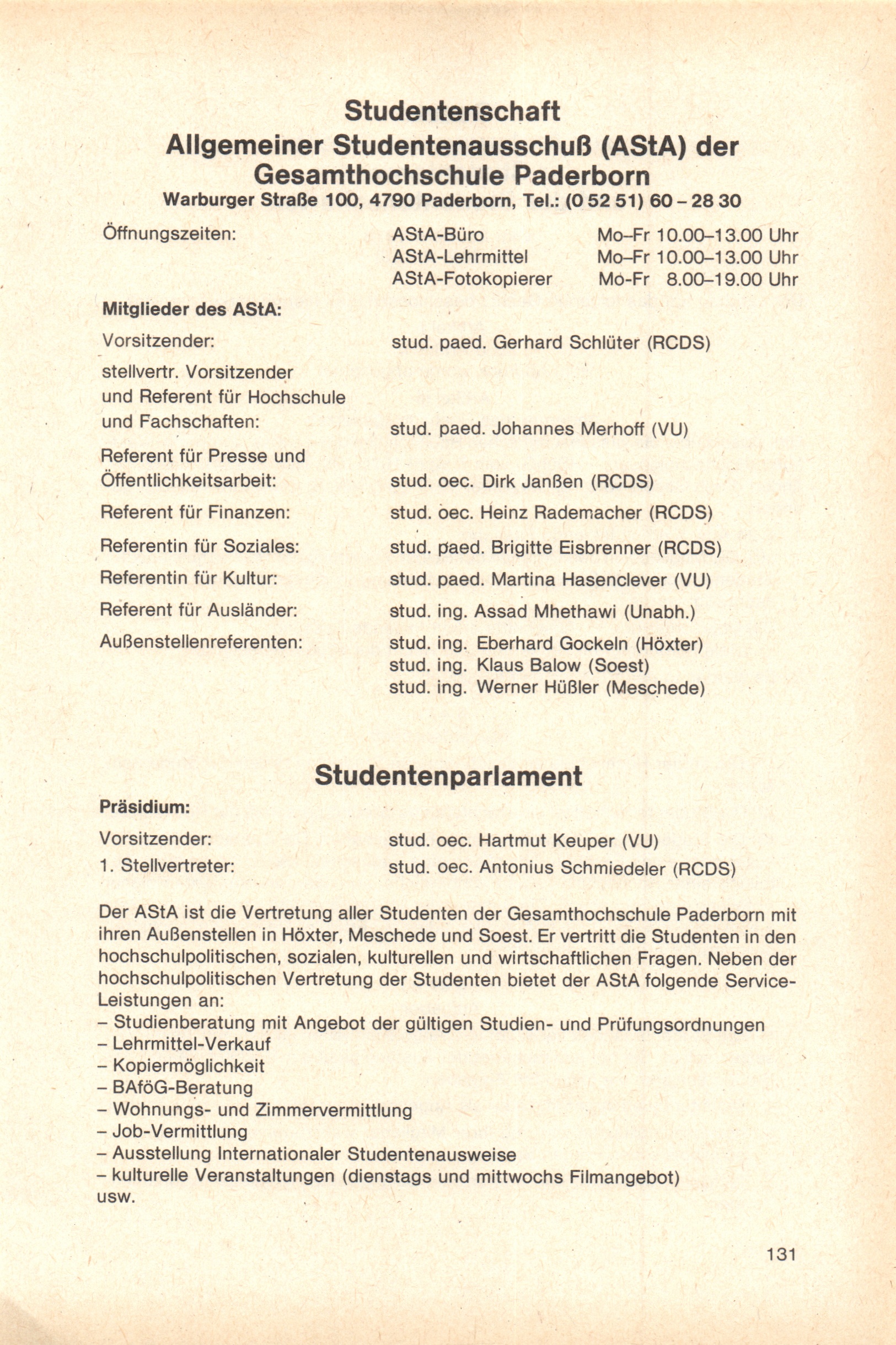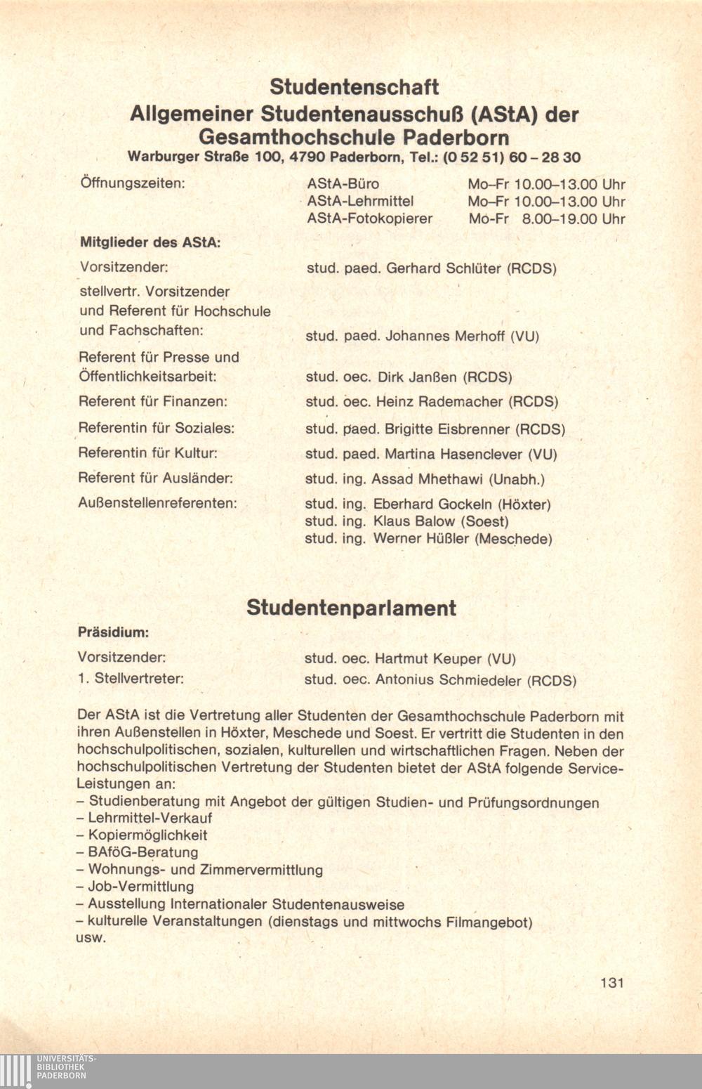Personal- und Vorlesungsverzeichnis für die Gesamthochschule Paderborn