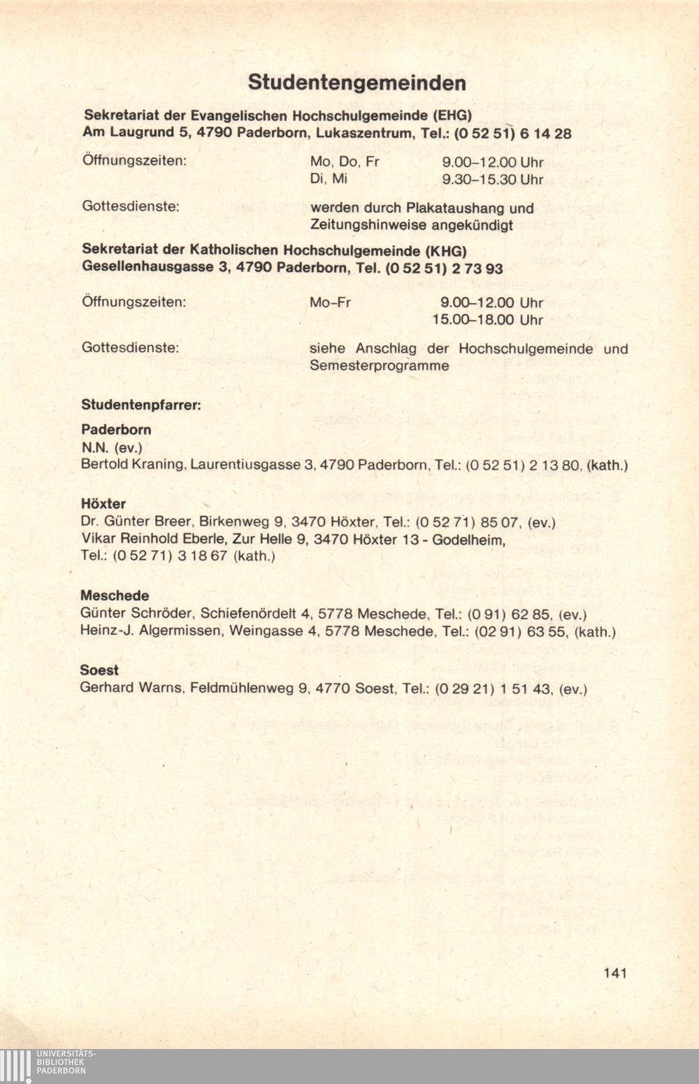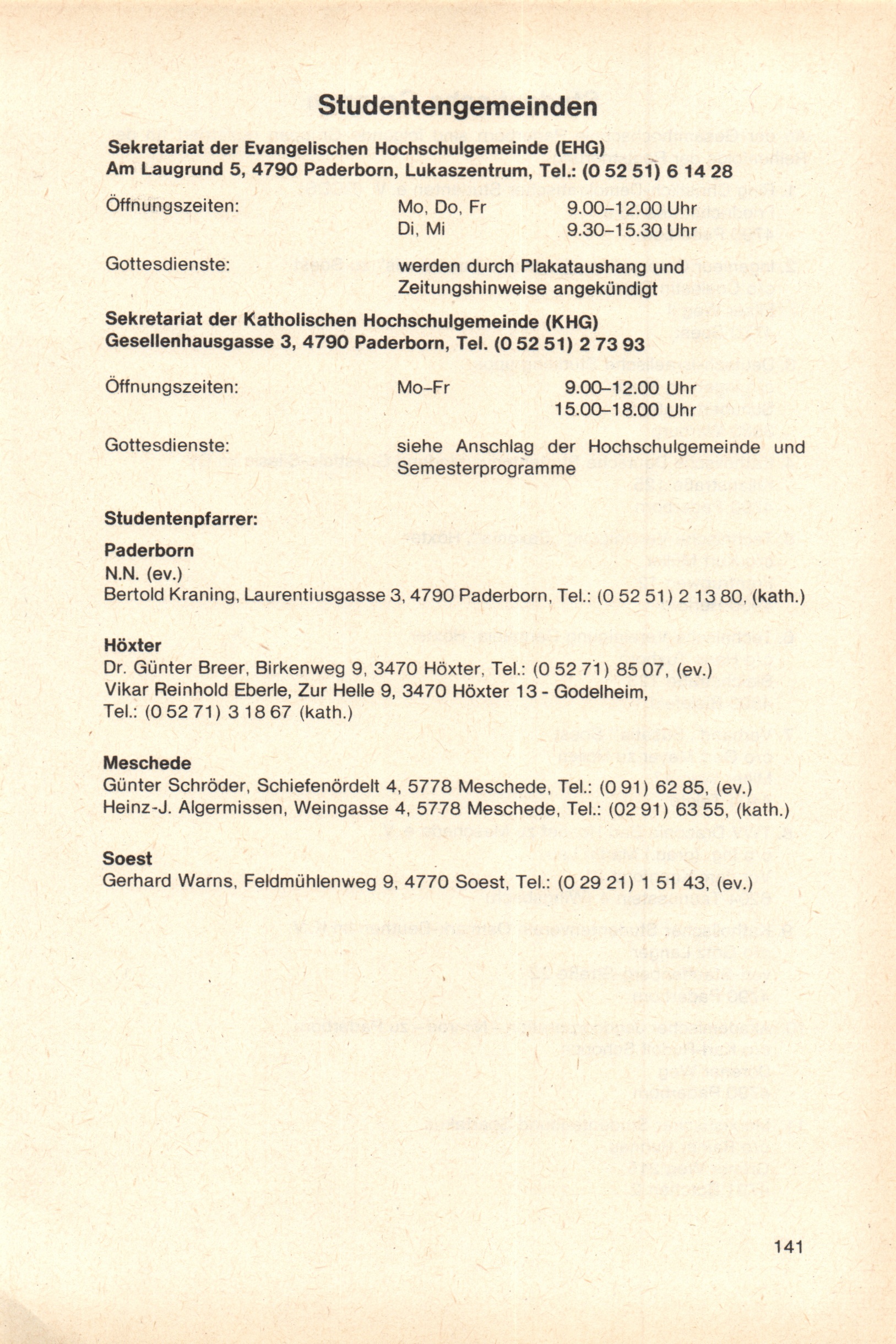 Personal- und Vorlesungsverzeichnis für die Gesamthochschule Paderborn