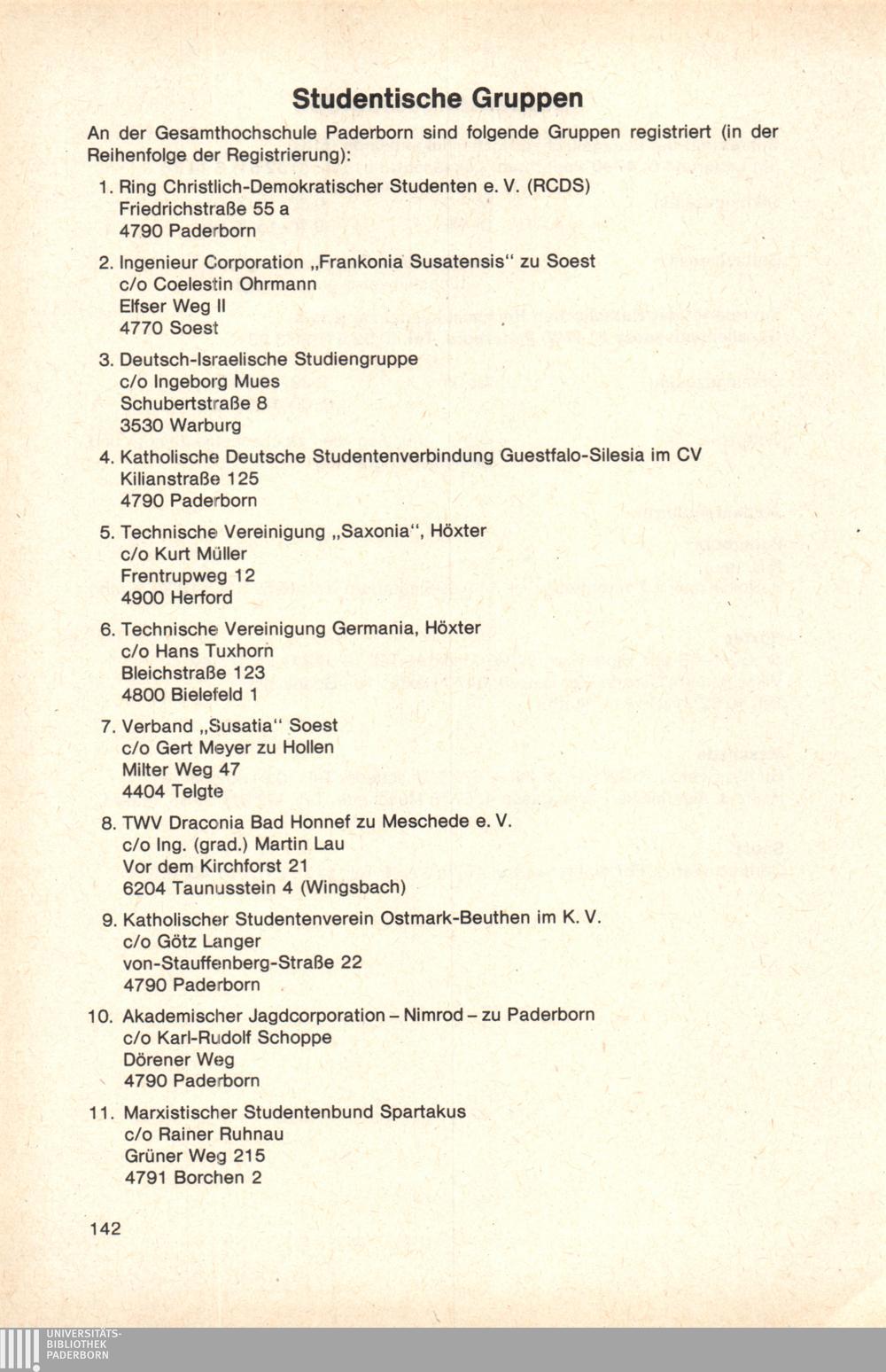 Personal- und Vorlesungsverzeichnis für die Gesamthochschule Paderborn