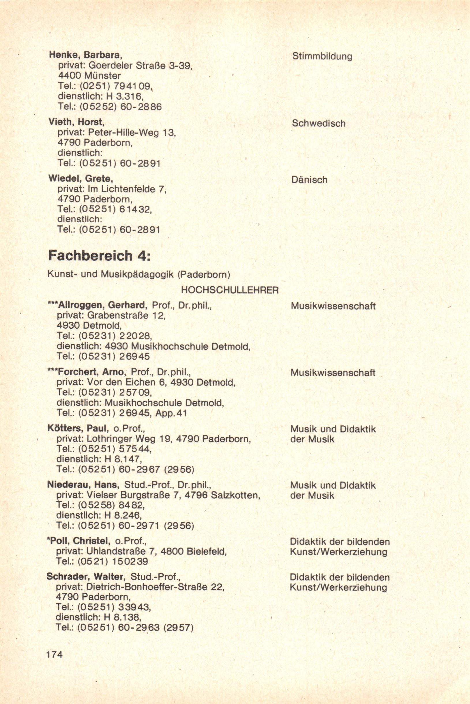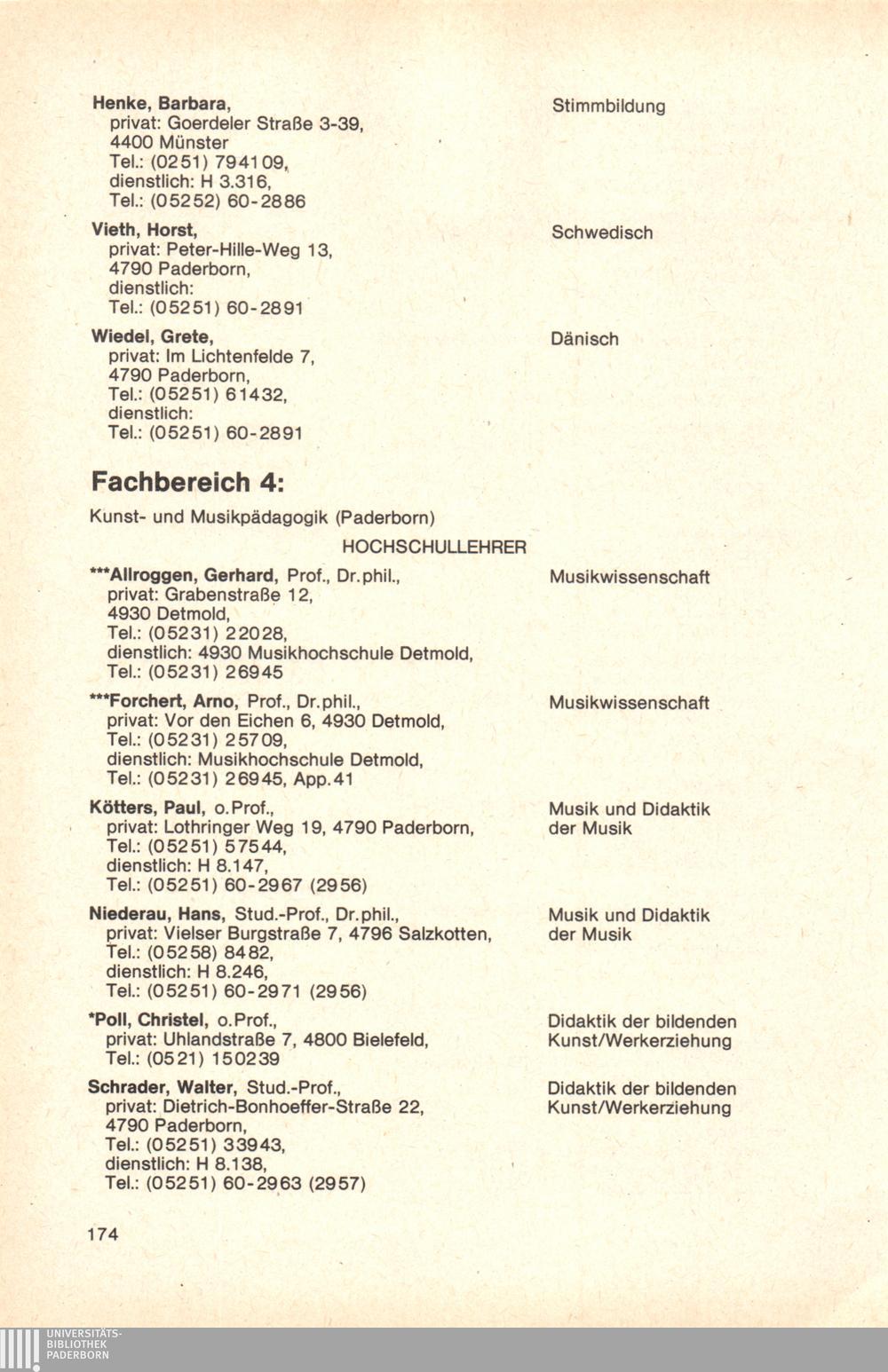 Personal- und Vorlesungsverzeichnis für die Gesamthochschule Paderborn