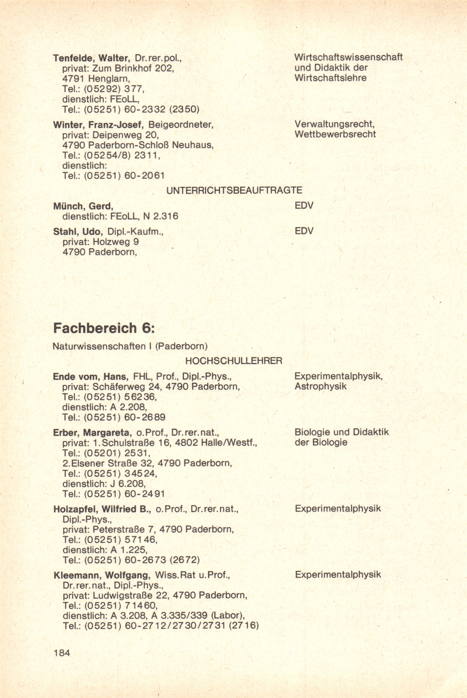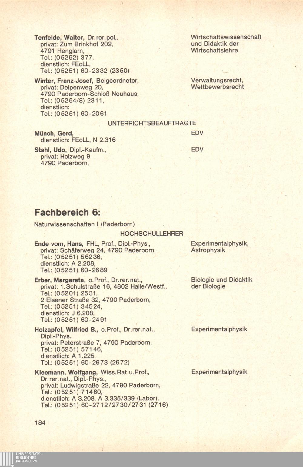 Personal- und Vorlesungsverzeichnis für die Gesamthochschule Paderborn