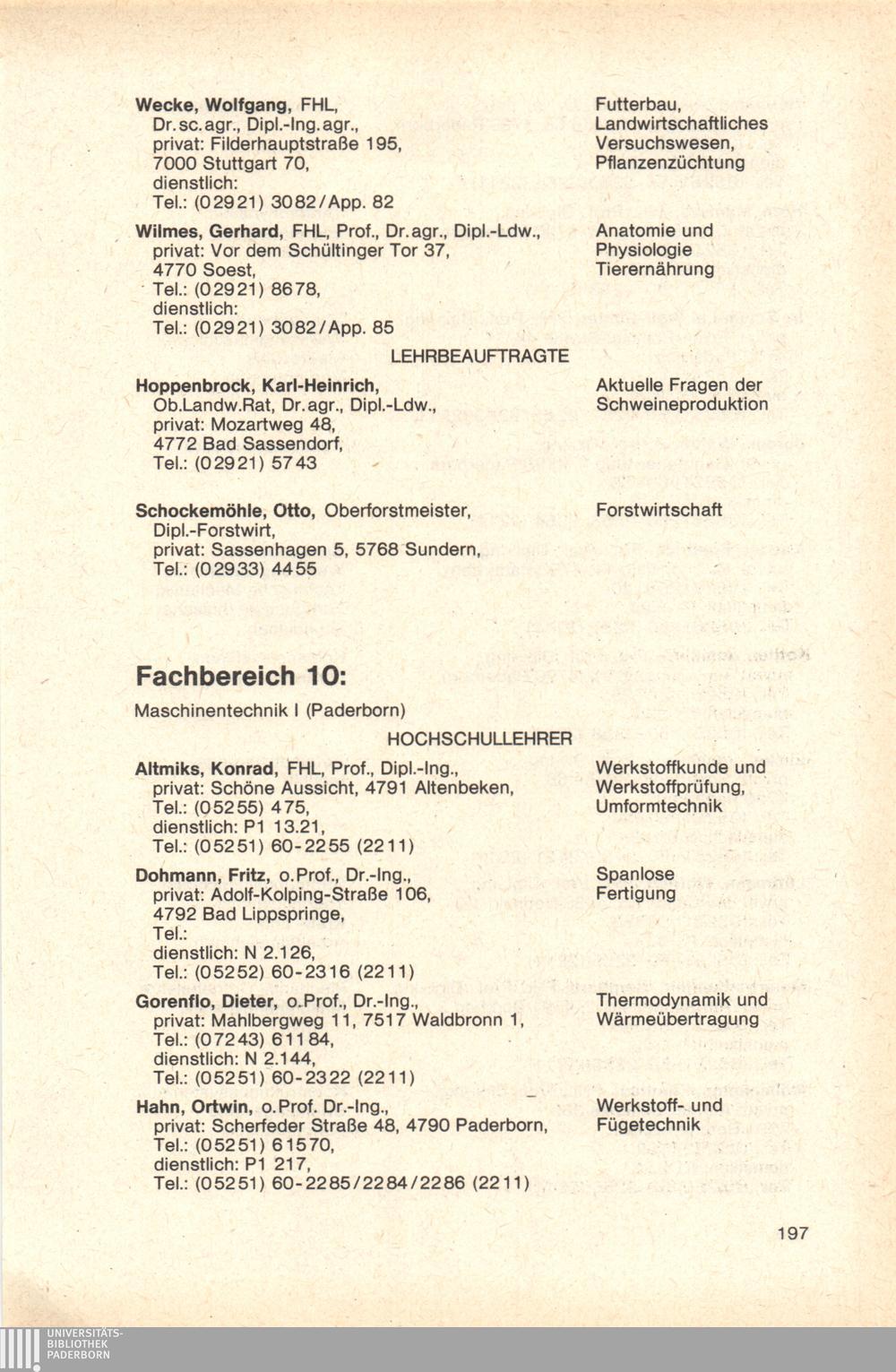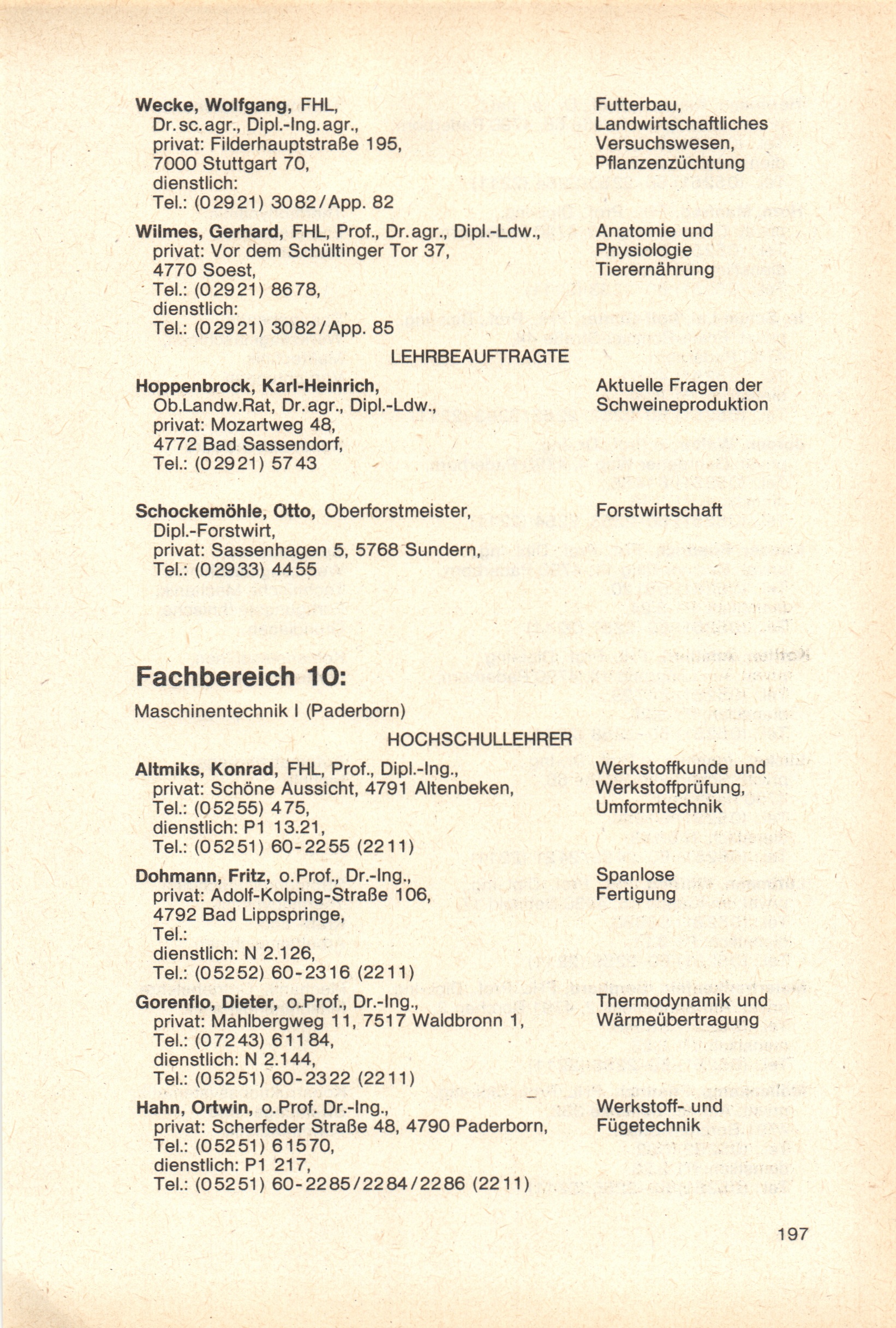 Personal- und Vorlesungsverzeichnis für die Gesamthochschule Paderborn