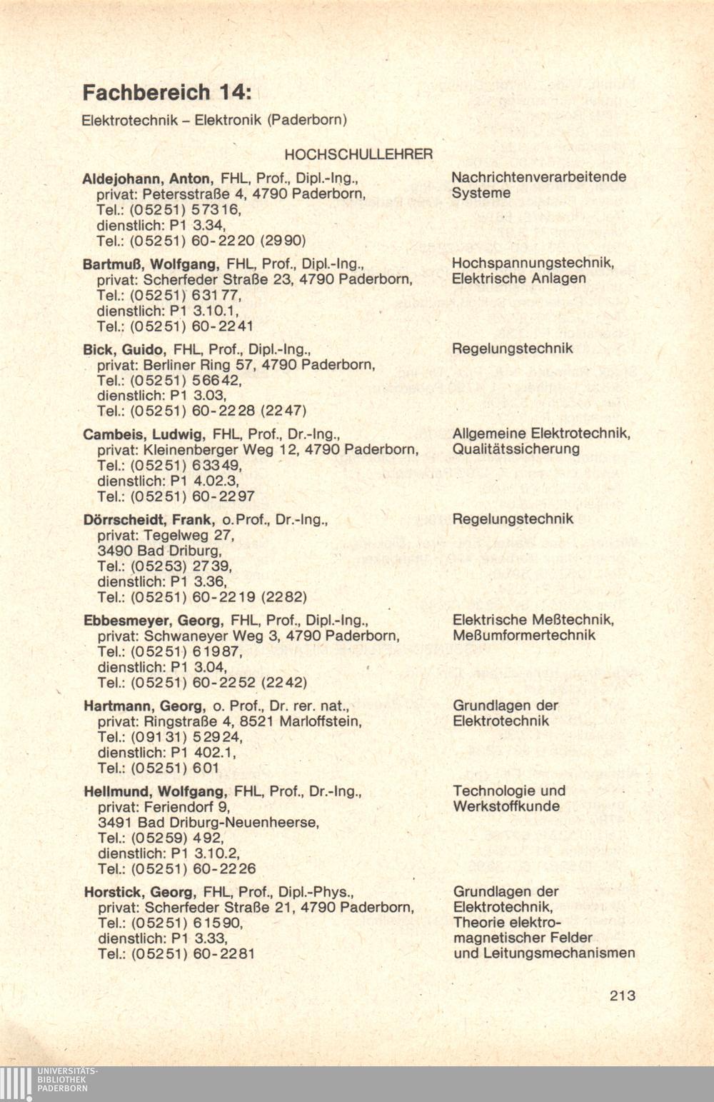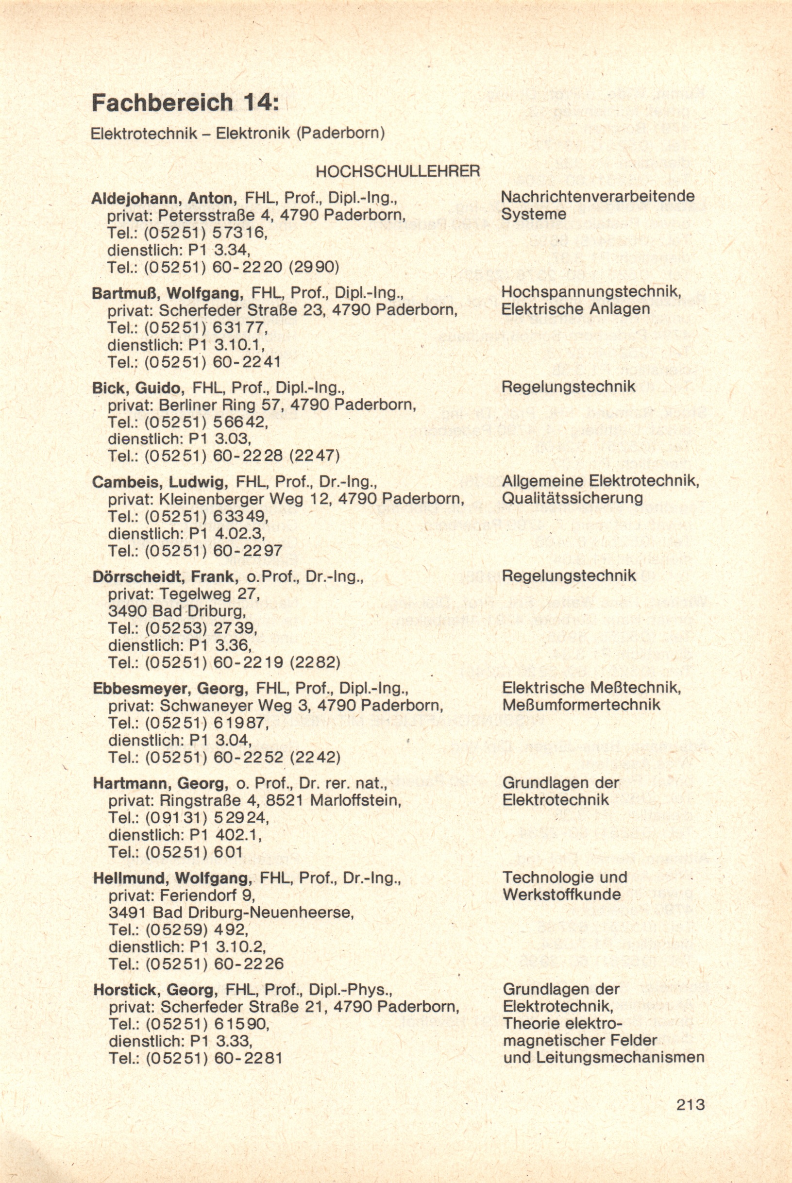 Personal- und Vorlesungsverzeichnis für die Gesamthochschule Paderborn
