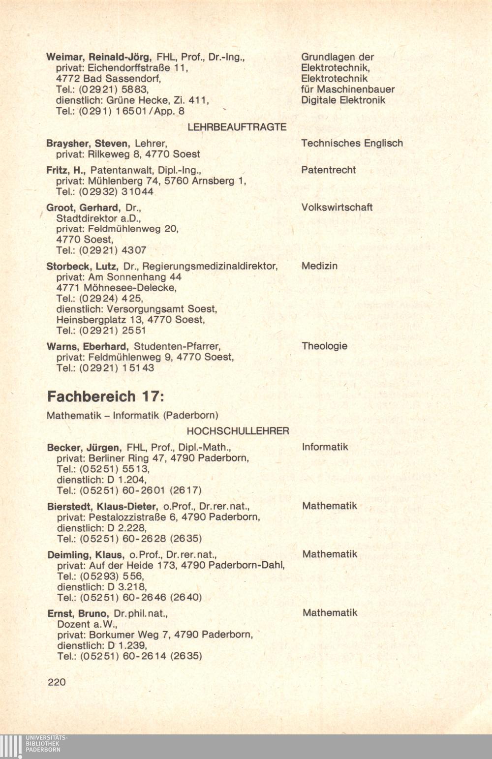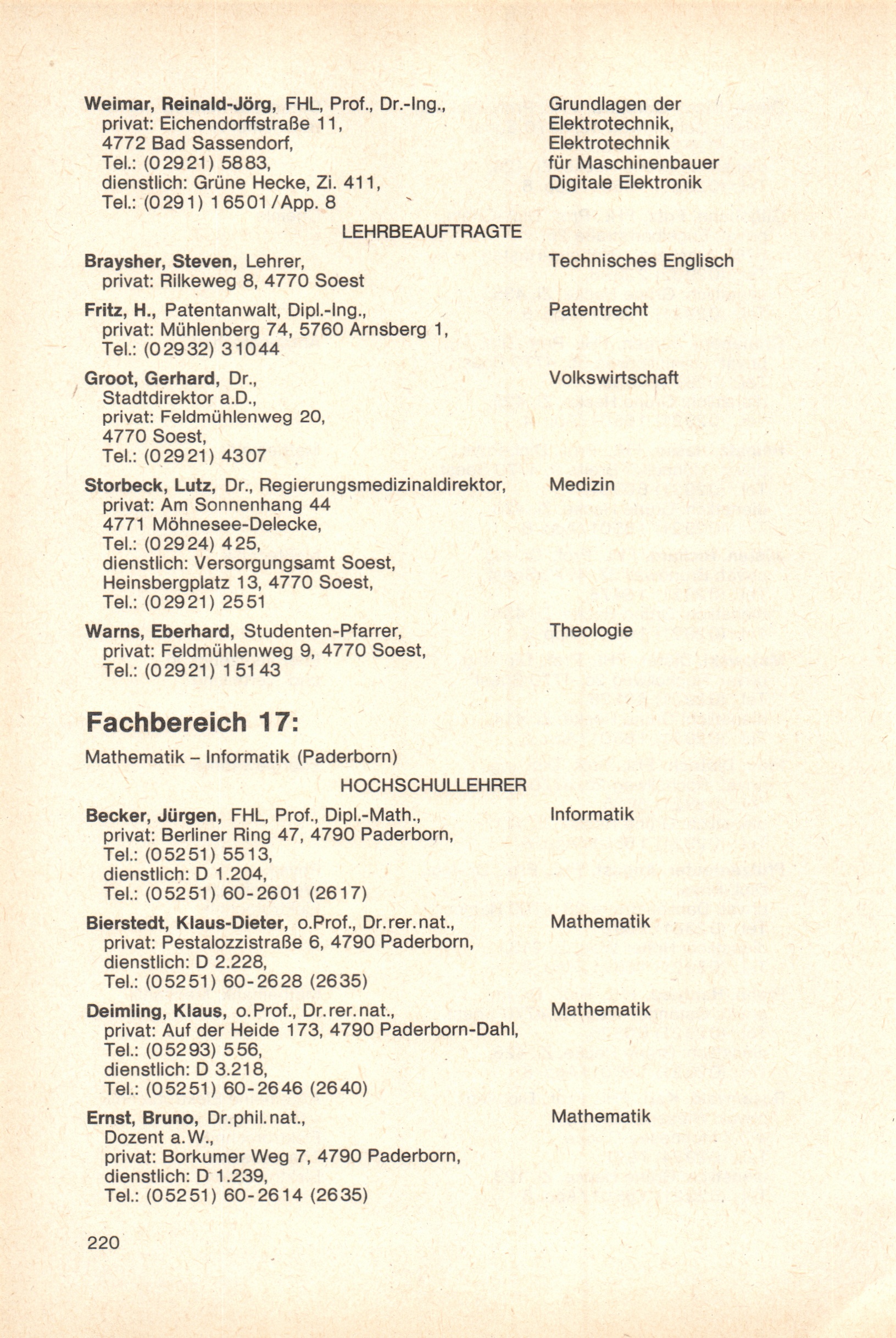 Personal- und Vorlesungsverzeichnis für die Gesamthochschule Paderborn