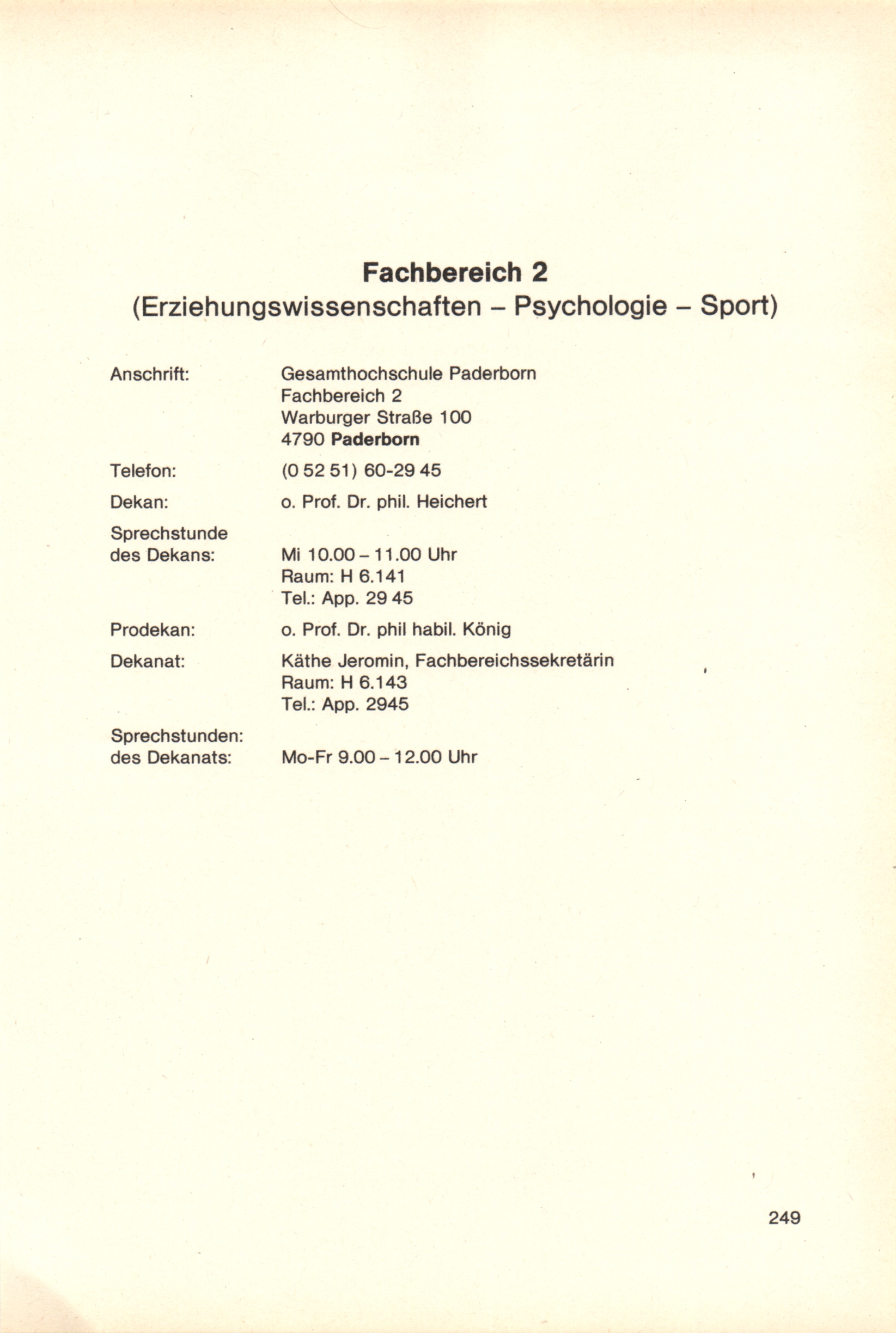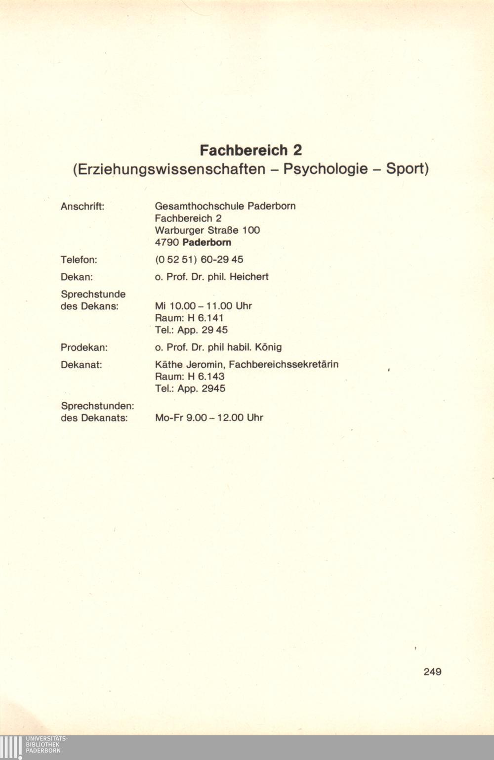Personal- und Vorlesungsverzeichnis für die Gesamthochschule Paderborn
