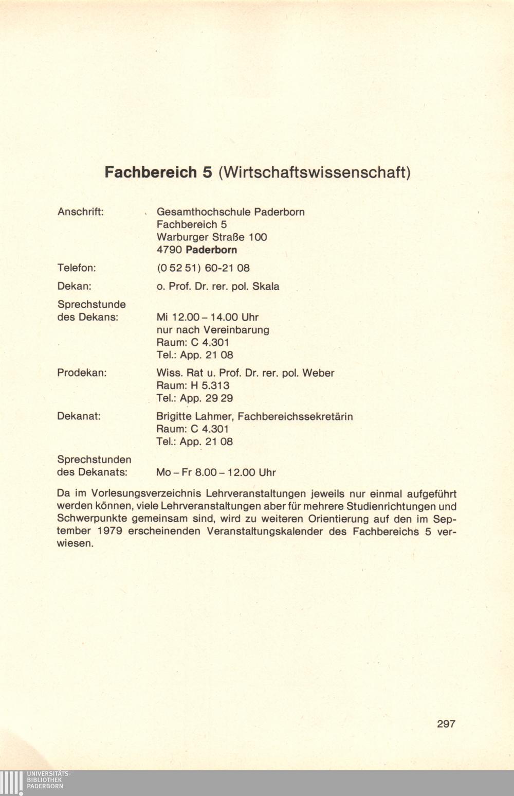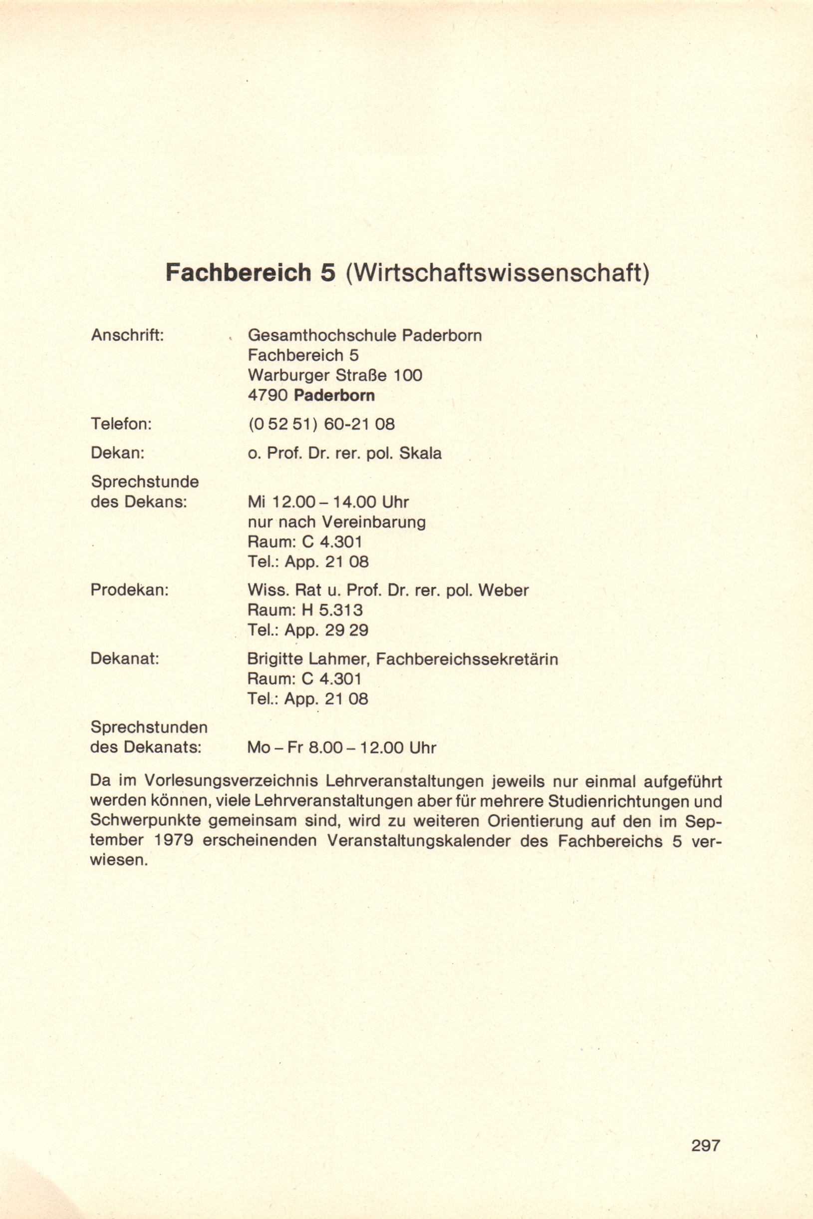 Personal- und Vorlesungsverzeichnis für die Gesamthochschule Paderborn