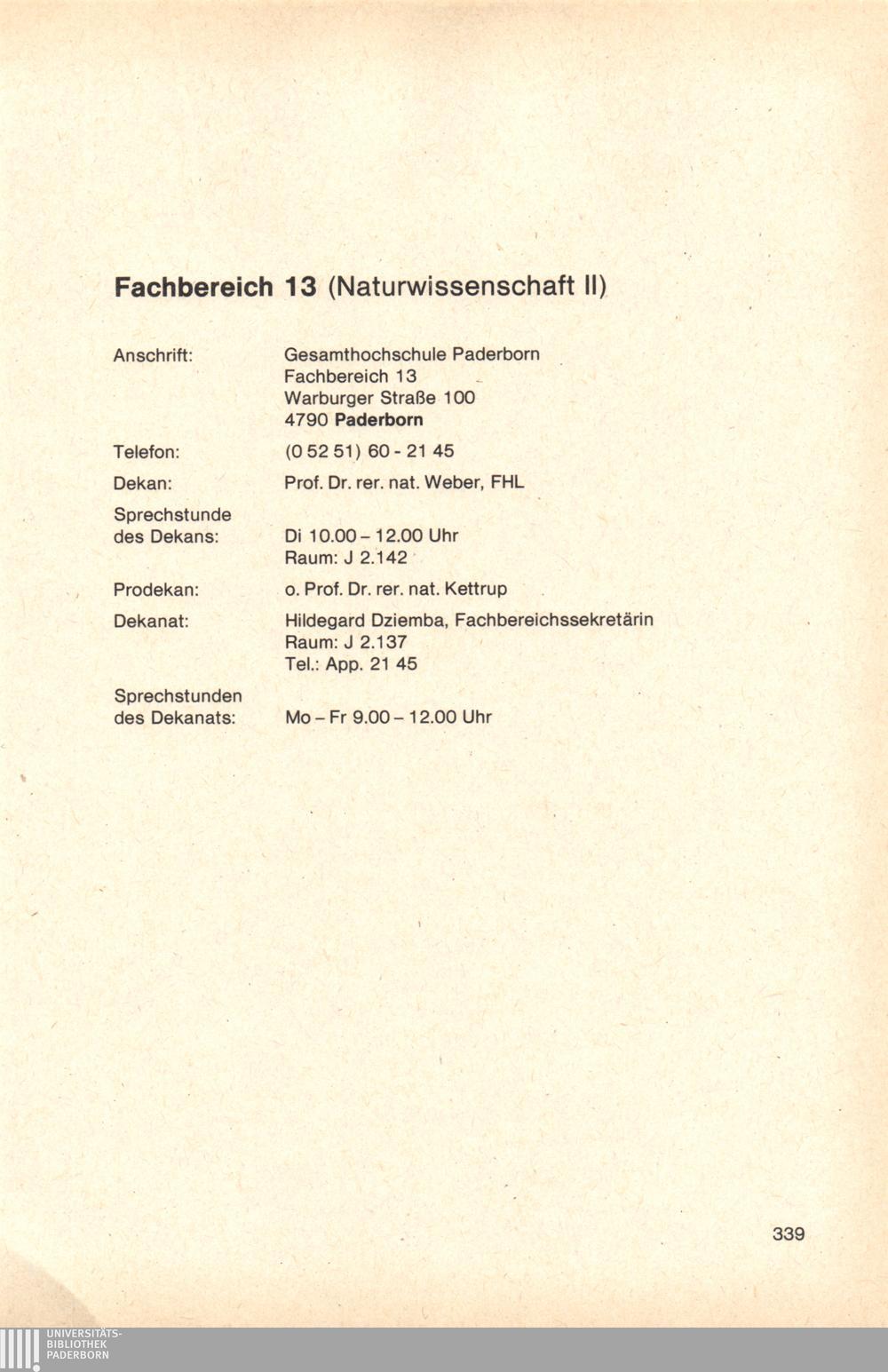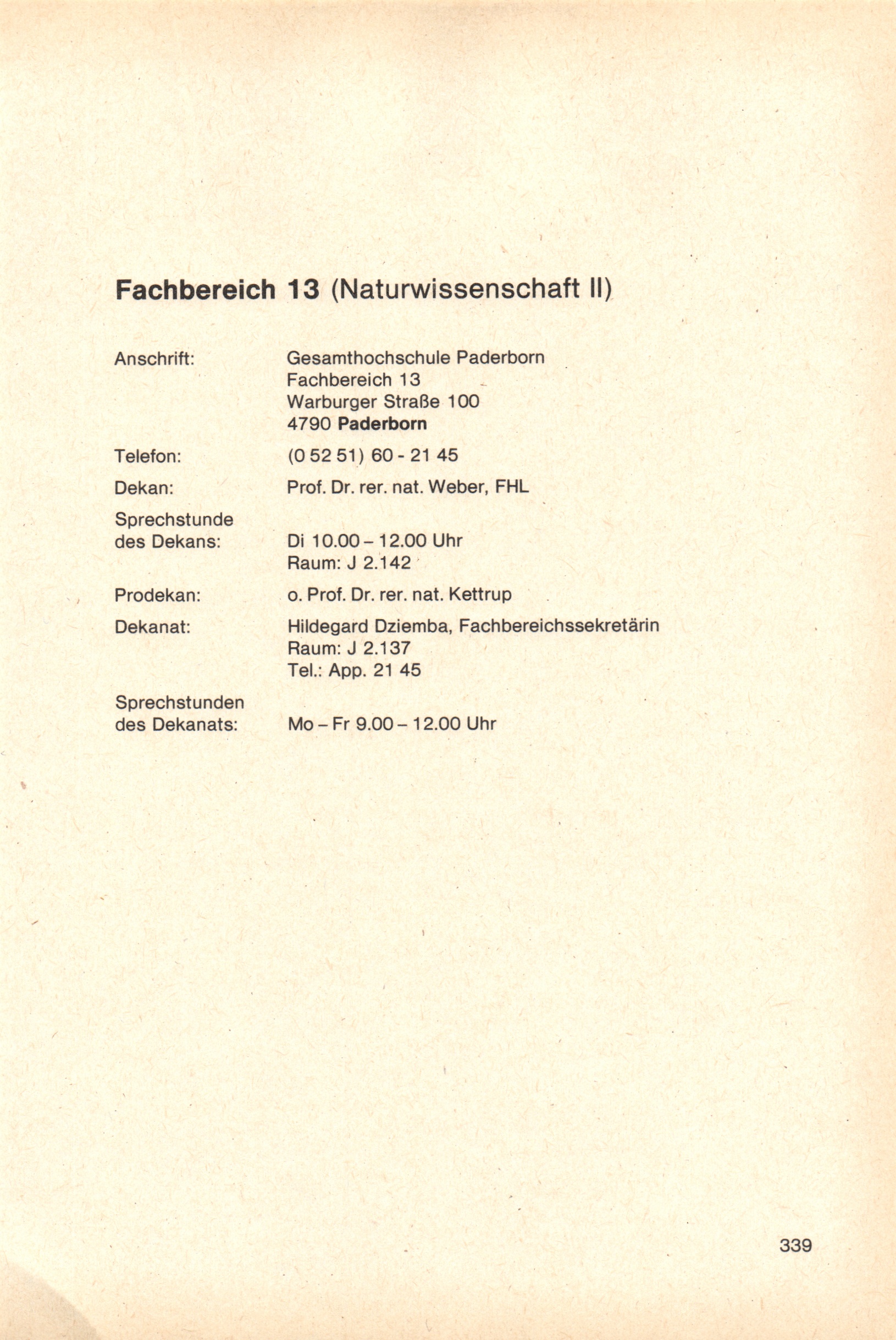 Personal- und Vorlesungsverzeichnis für die Gesamthochschule Paderborn