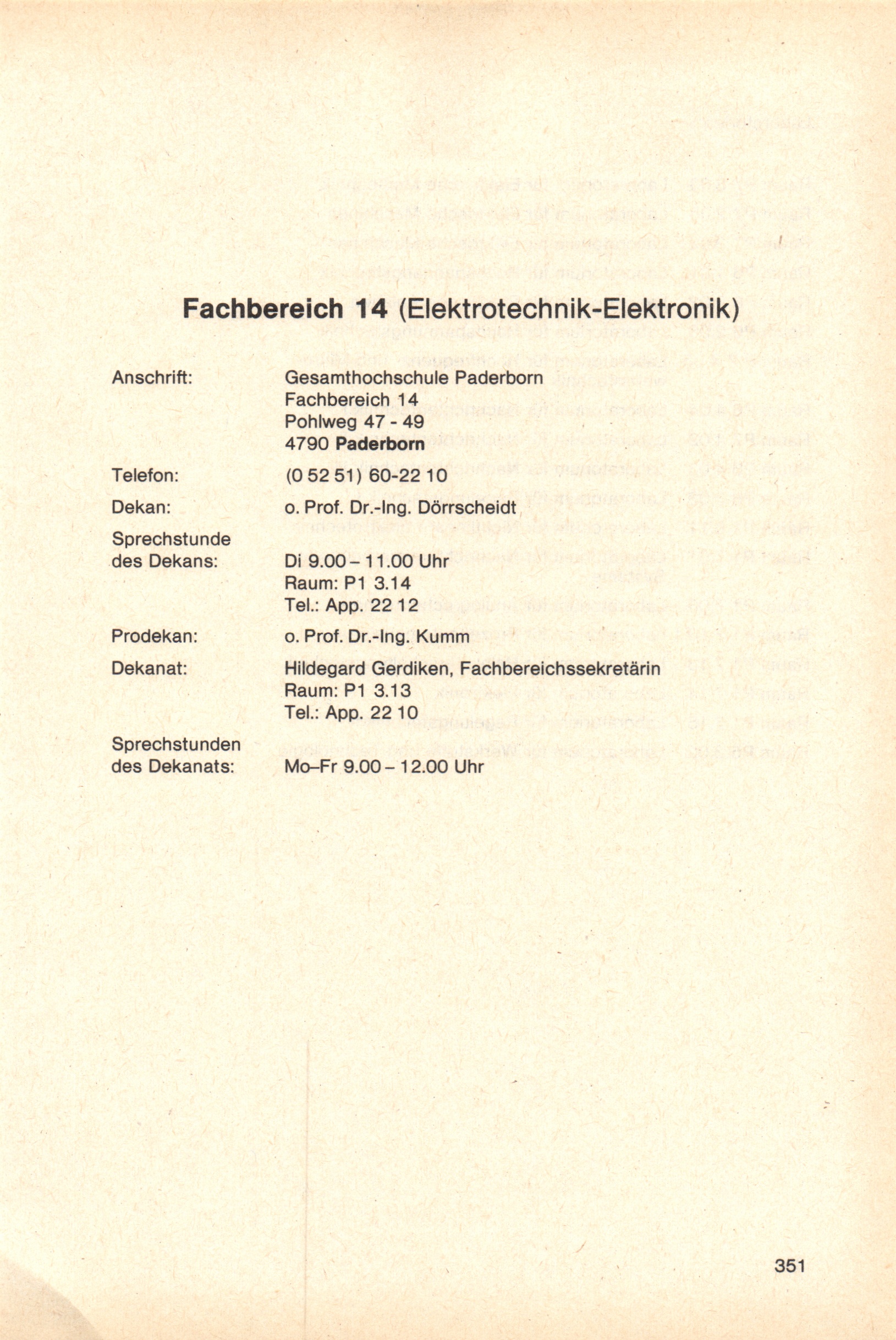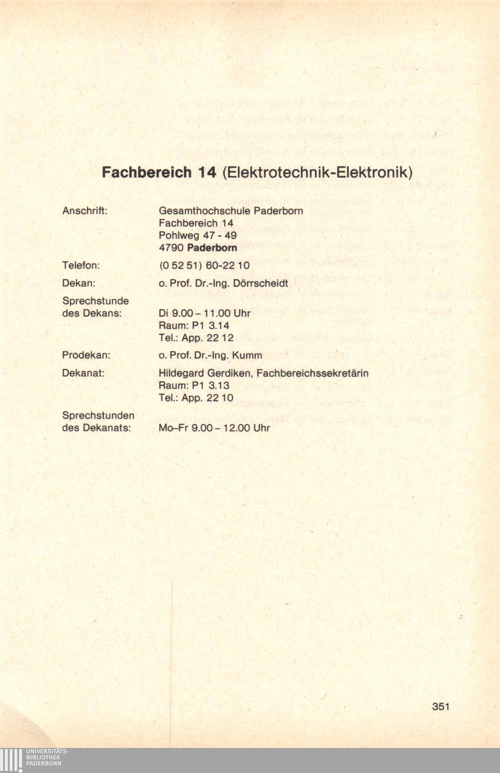 Personal- und Vorlesungsverzeichnis für die Gesamthochschule Paderborn