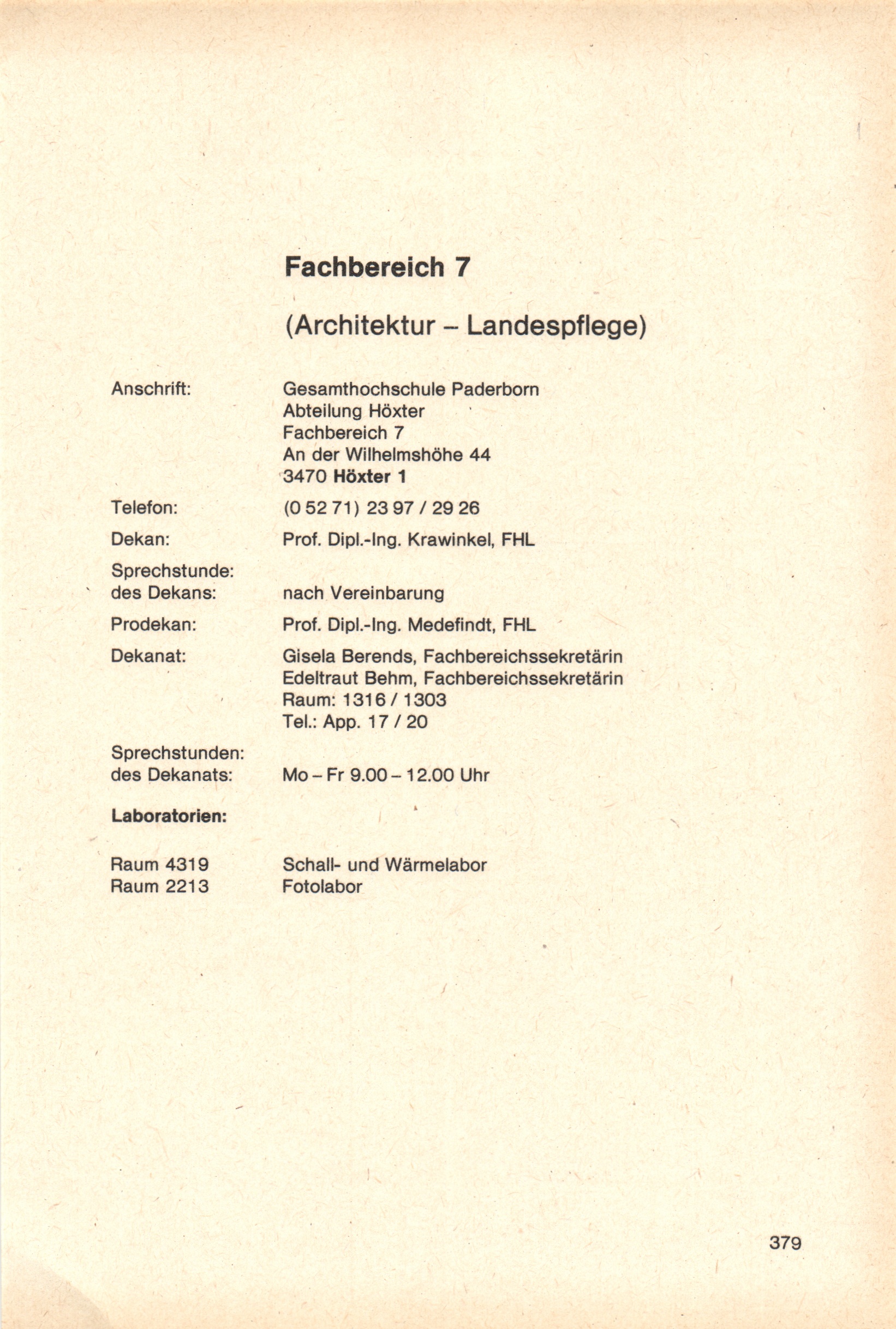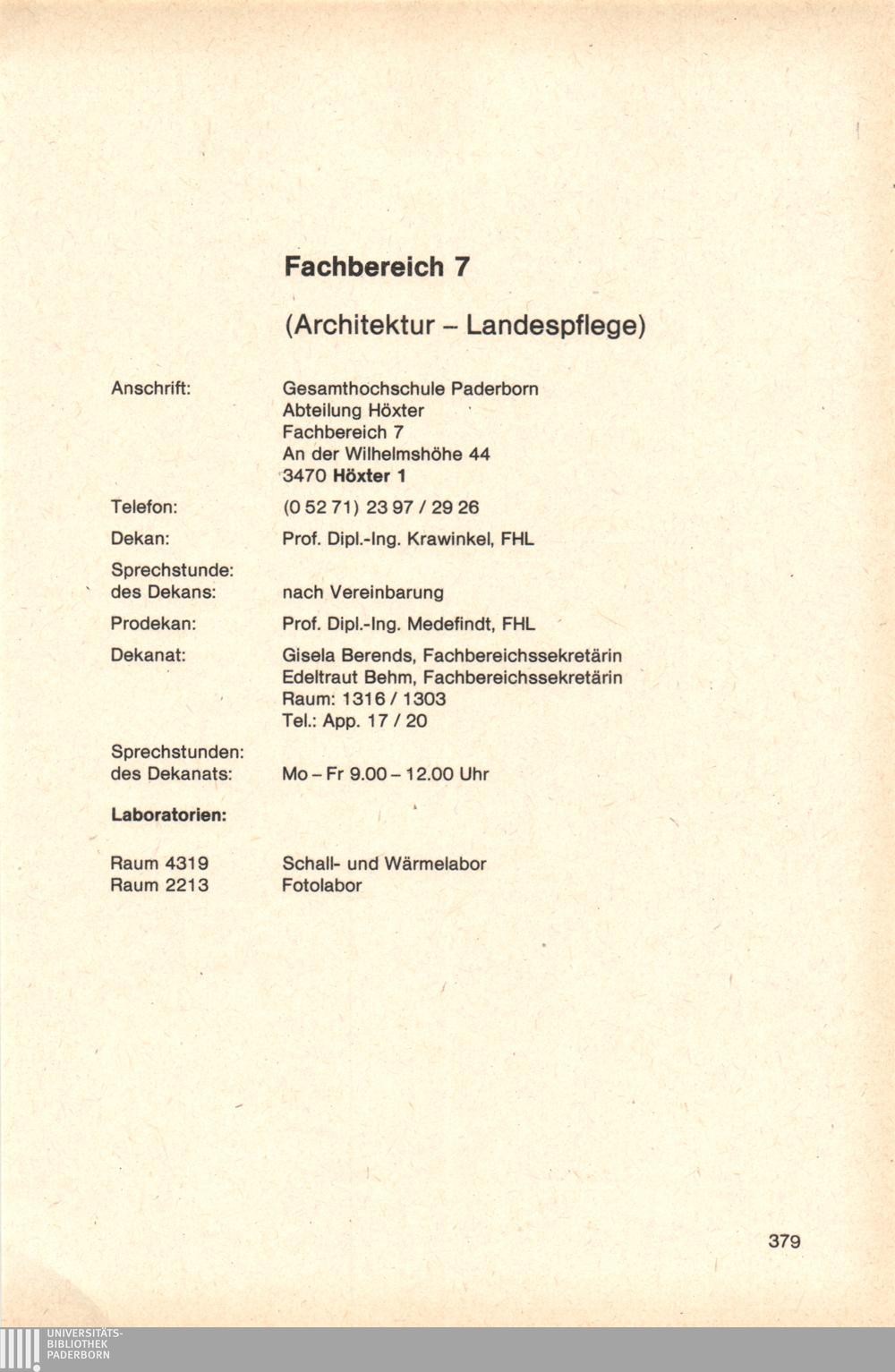 Personal- und Vorlesungsverzeichnis für die Gesamthochschule Paderborn