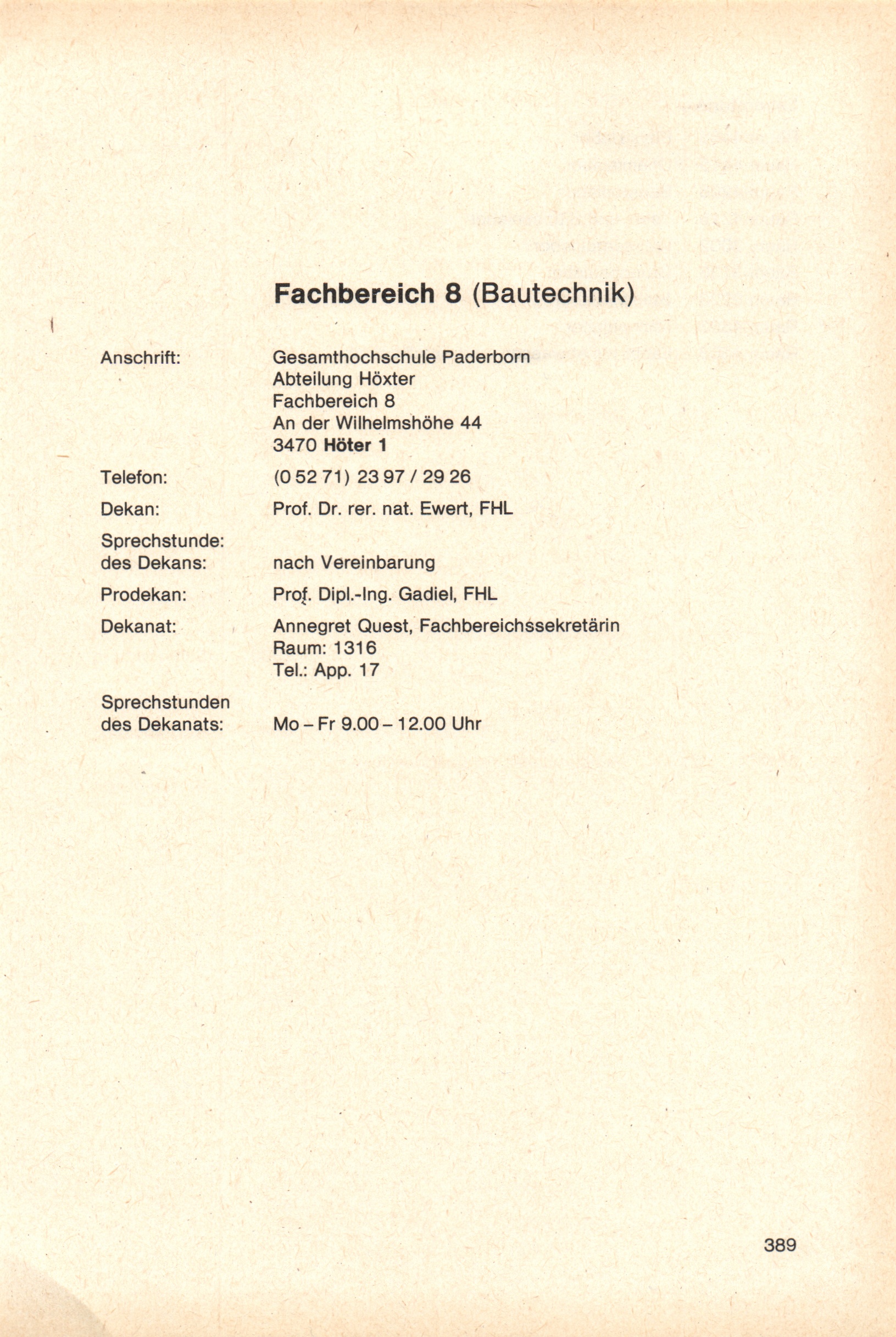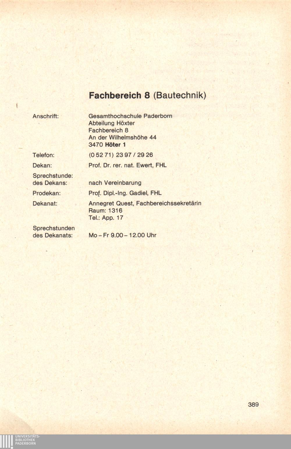 Personal- und Vorlesungsverzeichnis für die Gesamthochschule Paderborn