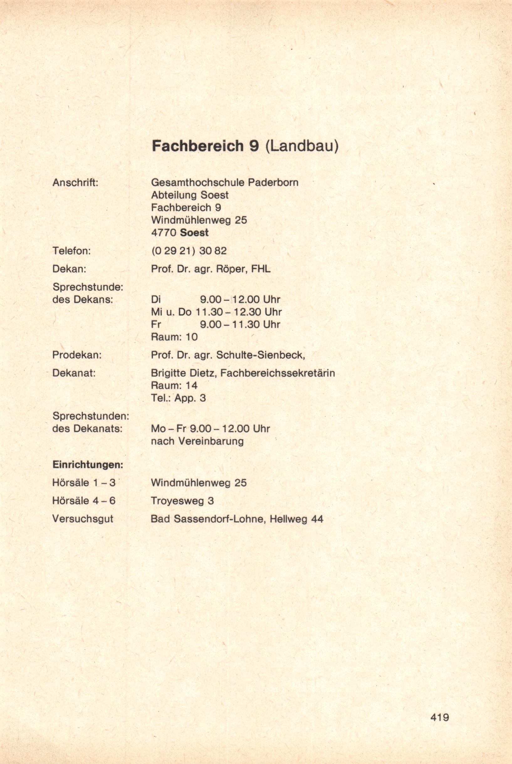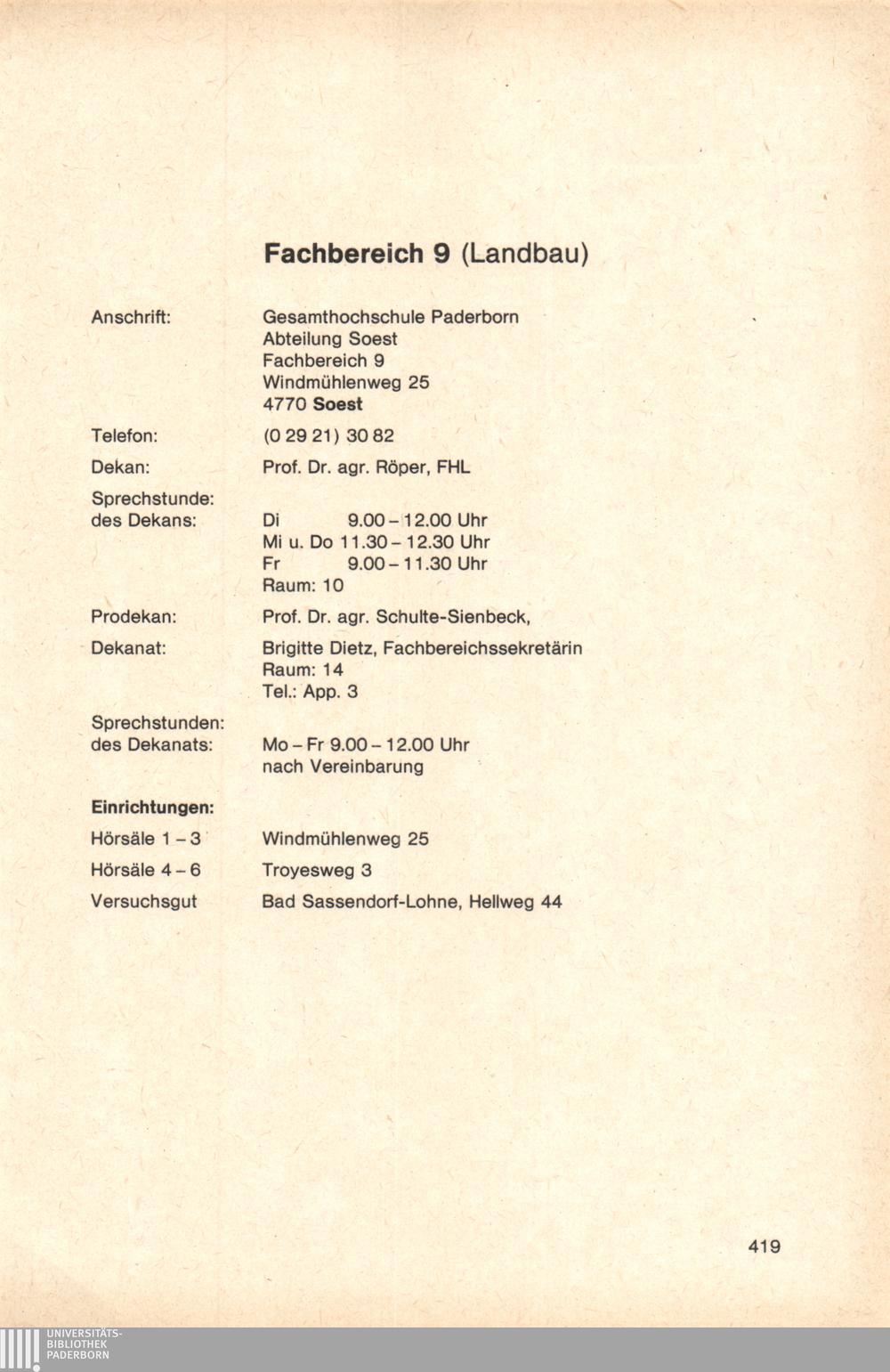 Personal- und Vorlesungsverzeichnis für die Gesamthochschule Paderborn