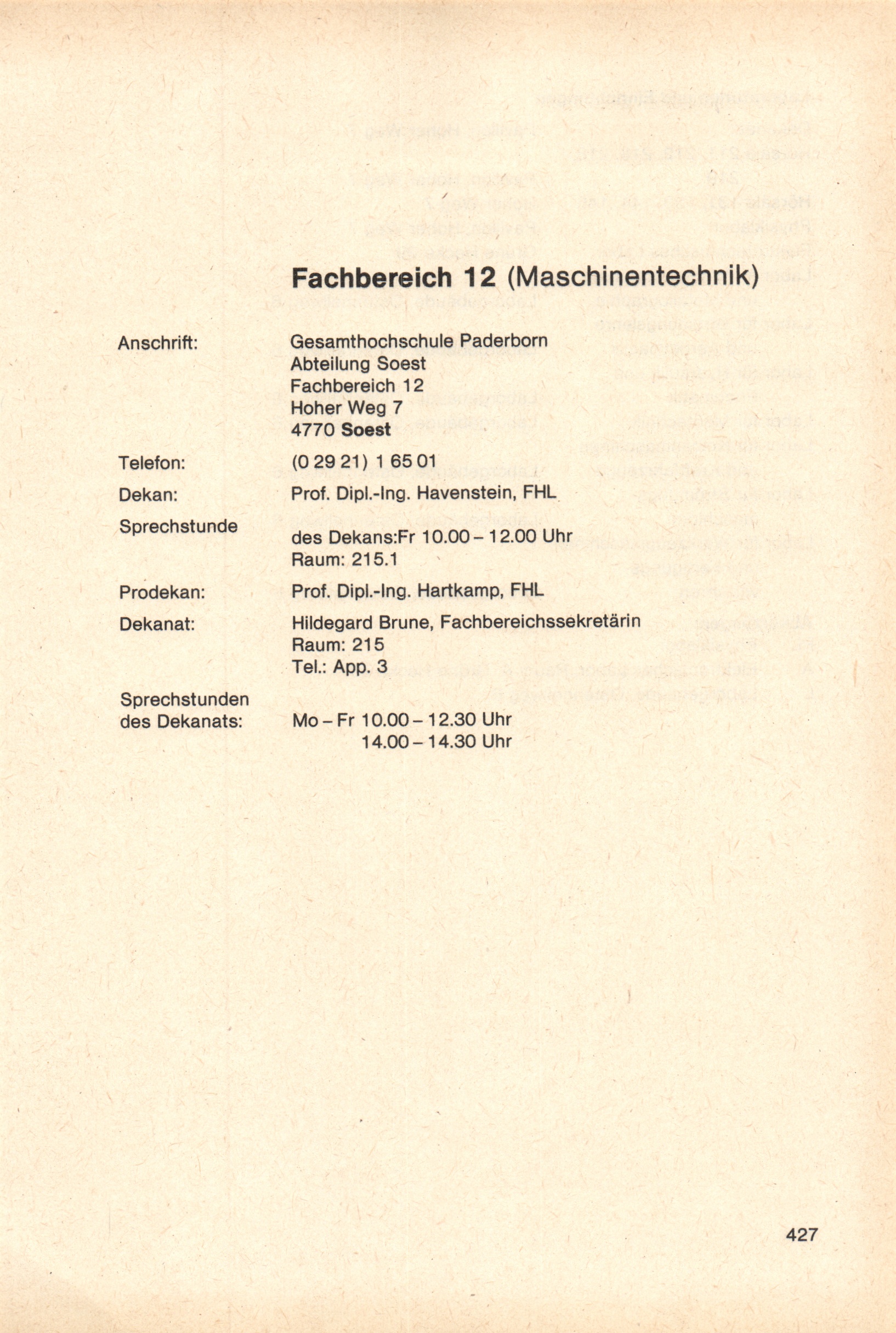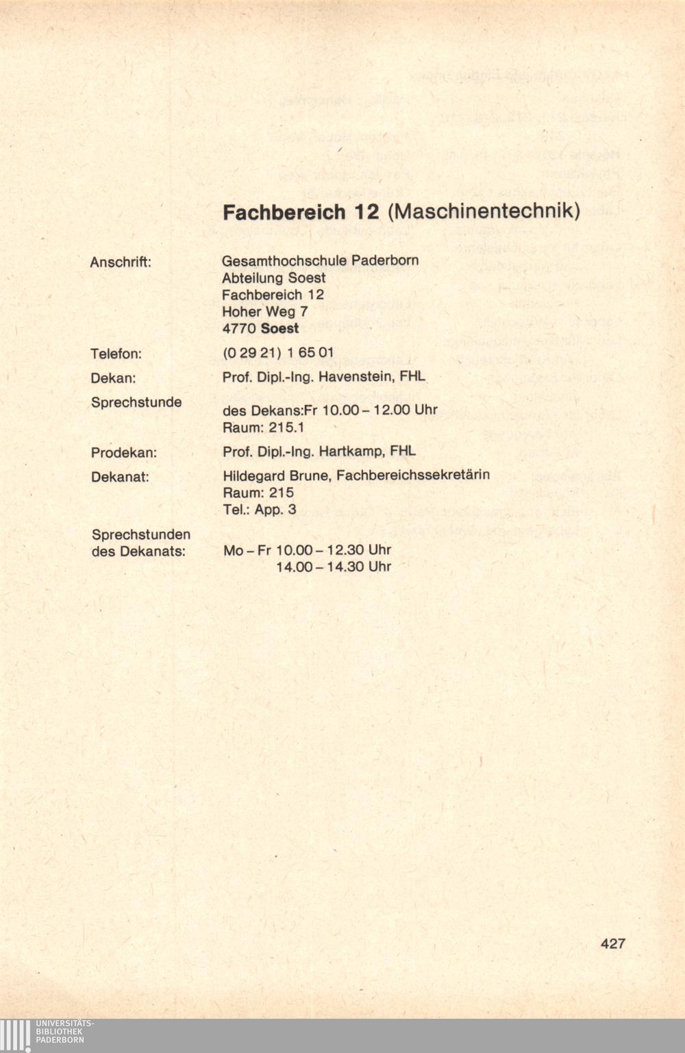 Personal- und Vorlesungsverzeichnis für die Gesamthochschule Paderborn