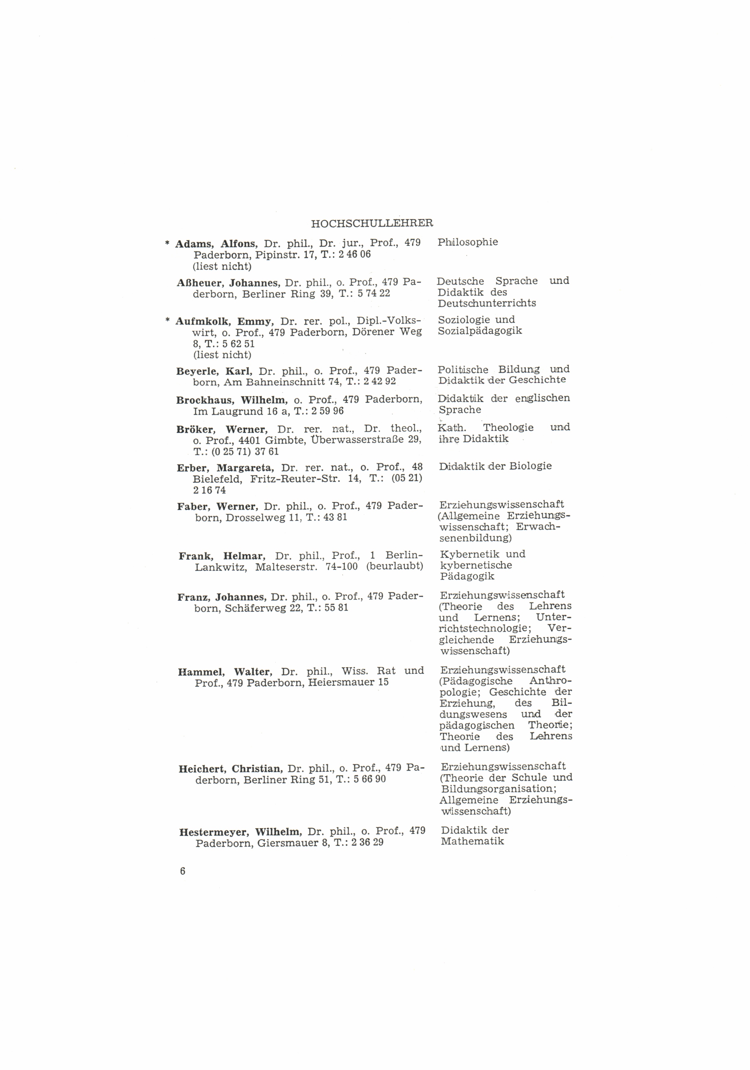 (1972-1973) Winter-Semester 1972/73 für die Studiengänge: Grund- und Hauptschullehrer, Diplomanden und Doktoranden der Erziehungswissenschaften
