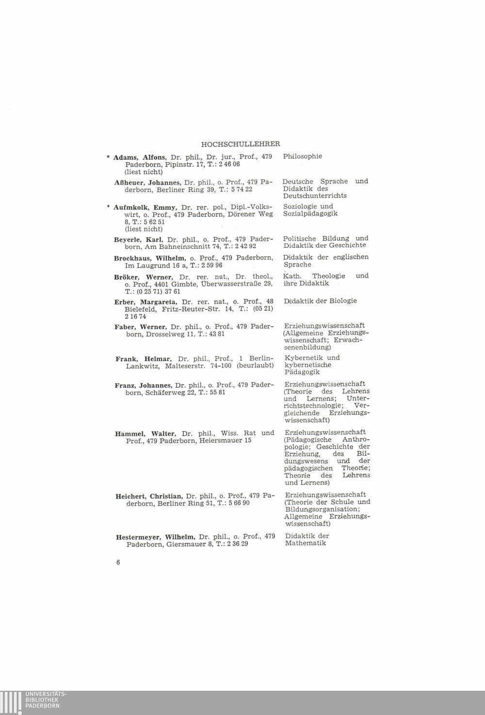 1972 - 1973 Winter-Semester 1972/73 für die Studiengänge: Grund- und Hauptschullehrer, Diplomanden und Doktoranden der Erziehungswissenschaften