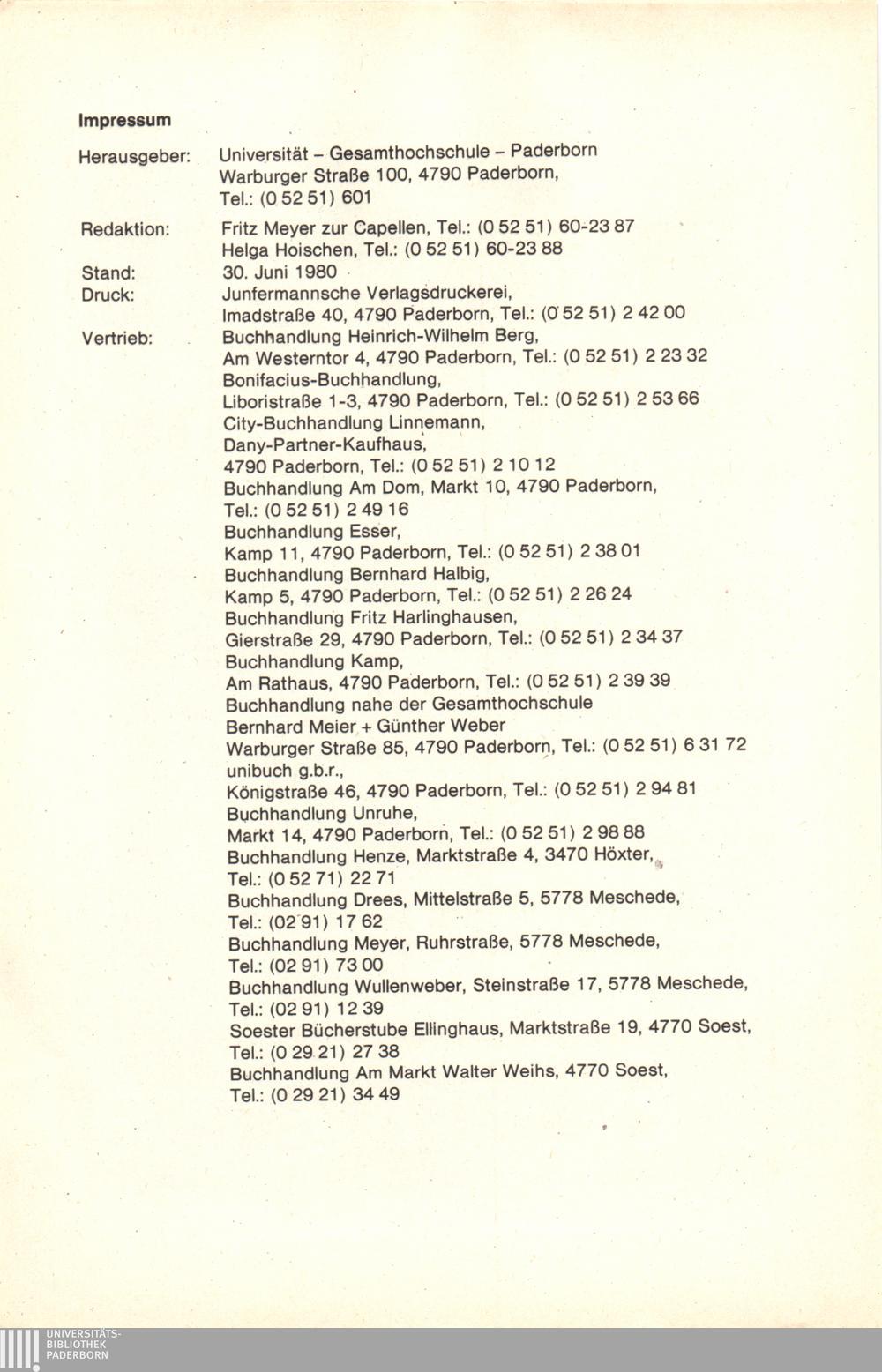 Personal- und Vorlesungsverzeichnis für die Universität Paderborn