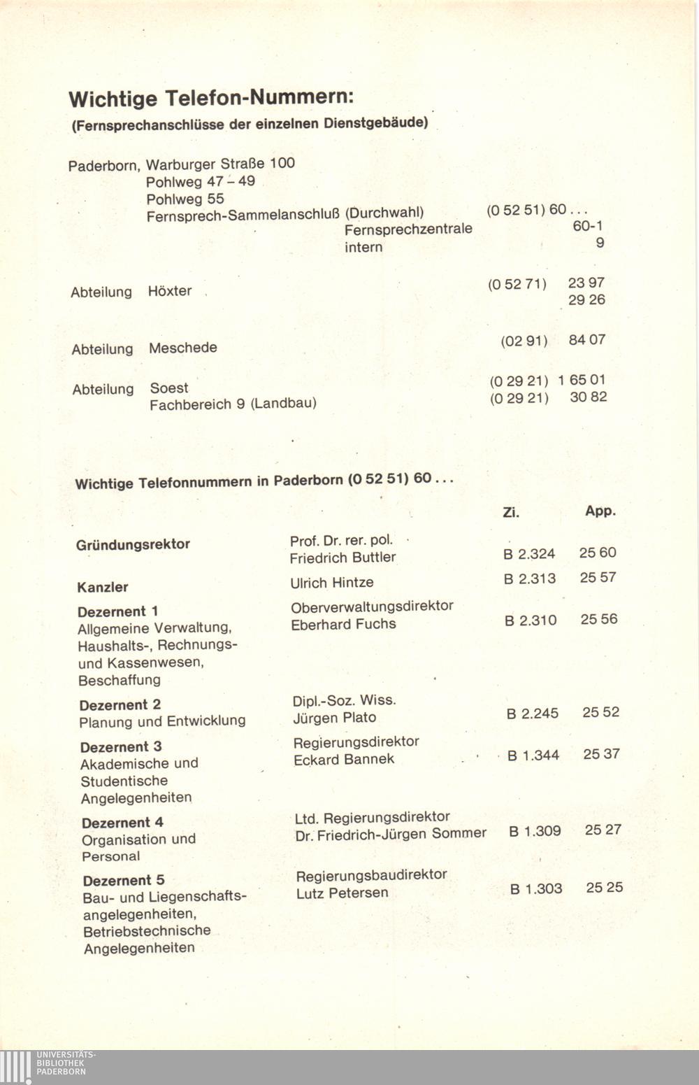 Personal- und Vorlesungsverzeichnis für die Universität Paderborn