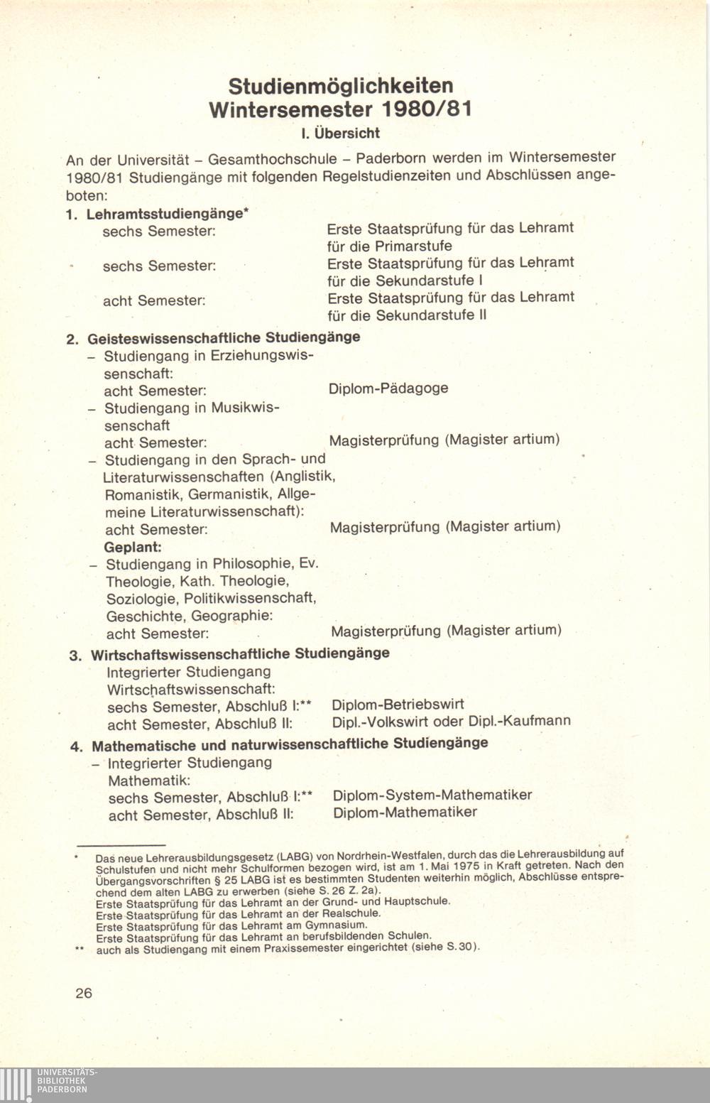 Personal- und Vorlesungsverzeichnis für die Universität Paderborn