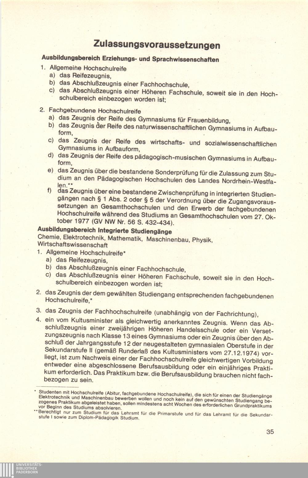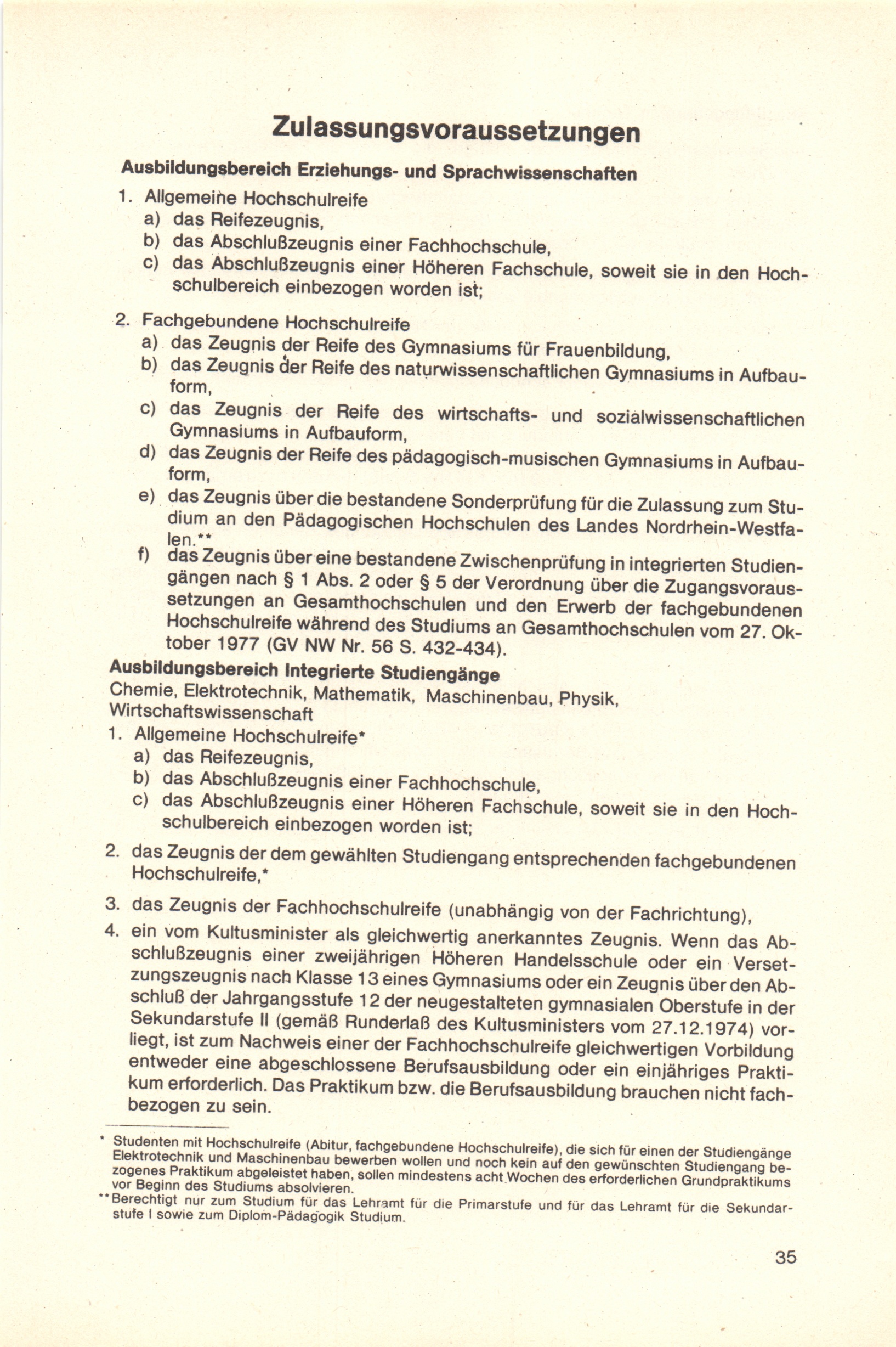 Zulassungsvoraussetzungen