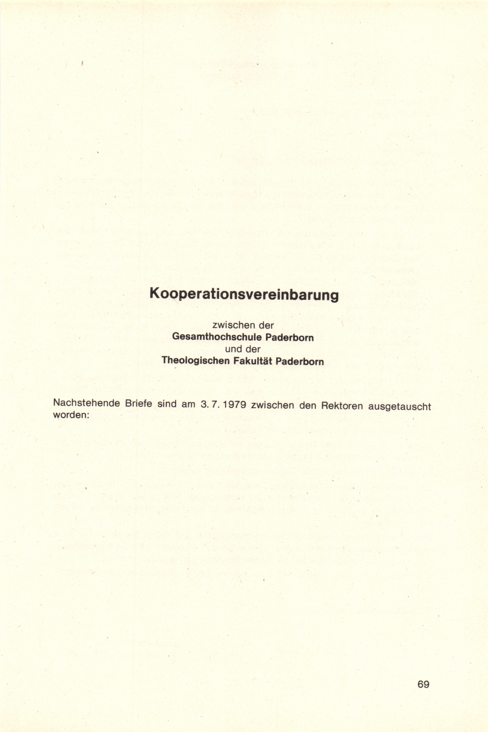 Kooperationsvereinbarung zwischen der Gesamthochschule Paderborn und der Katholischen[...]