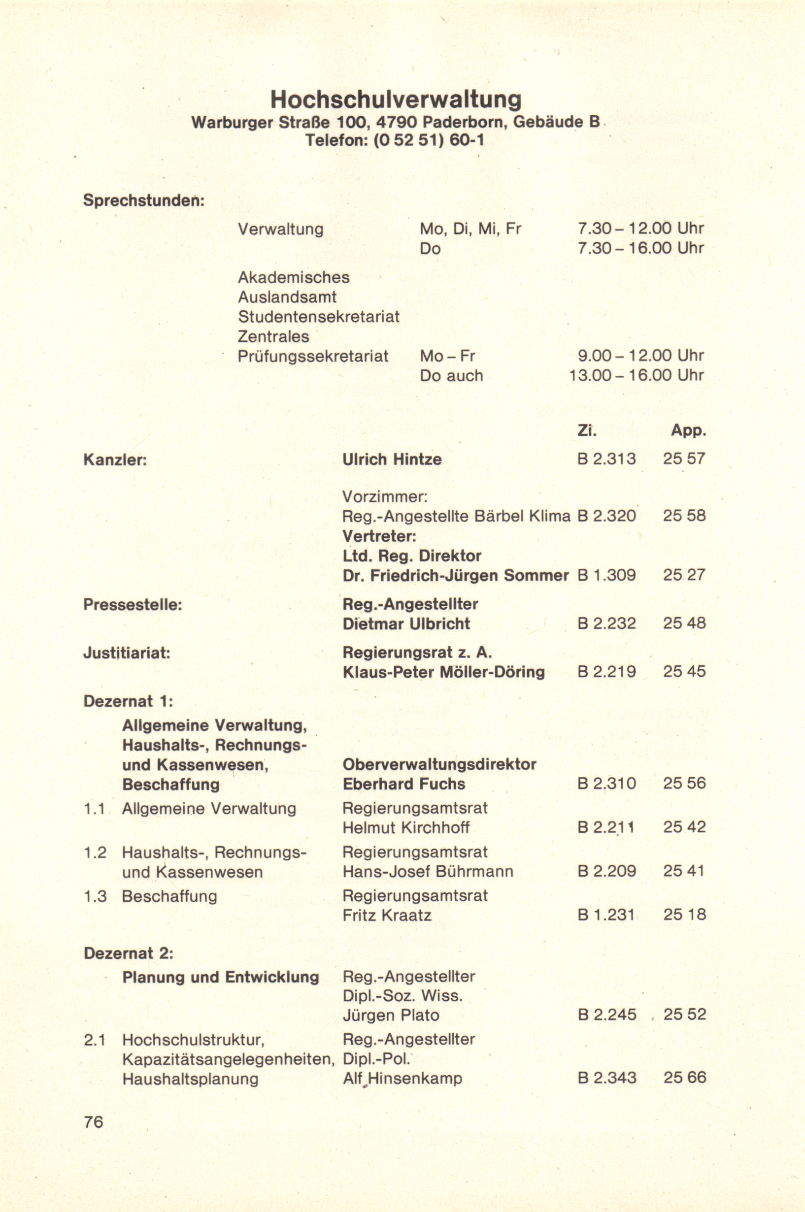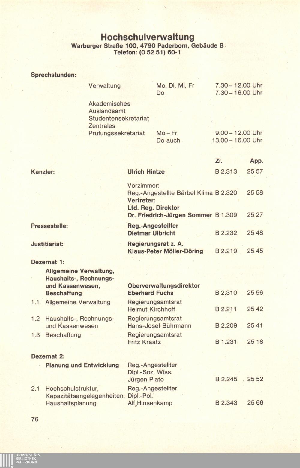 Personal- und Vorlesungsverzeichnis für die Universität Paderborn