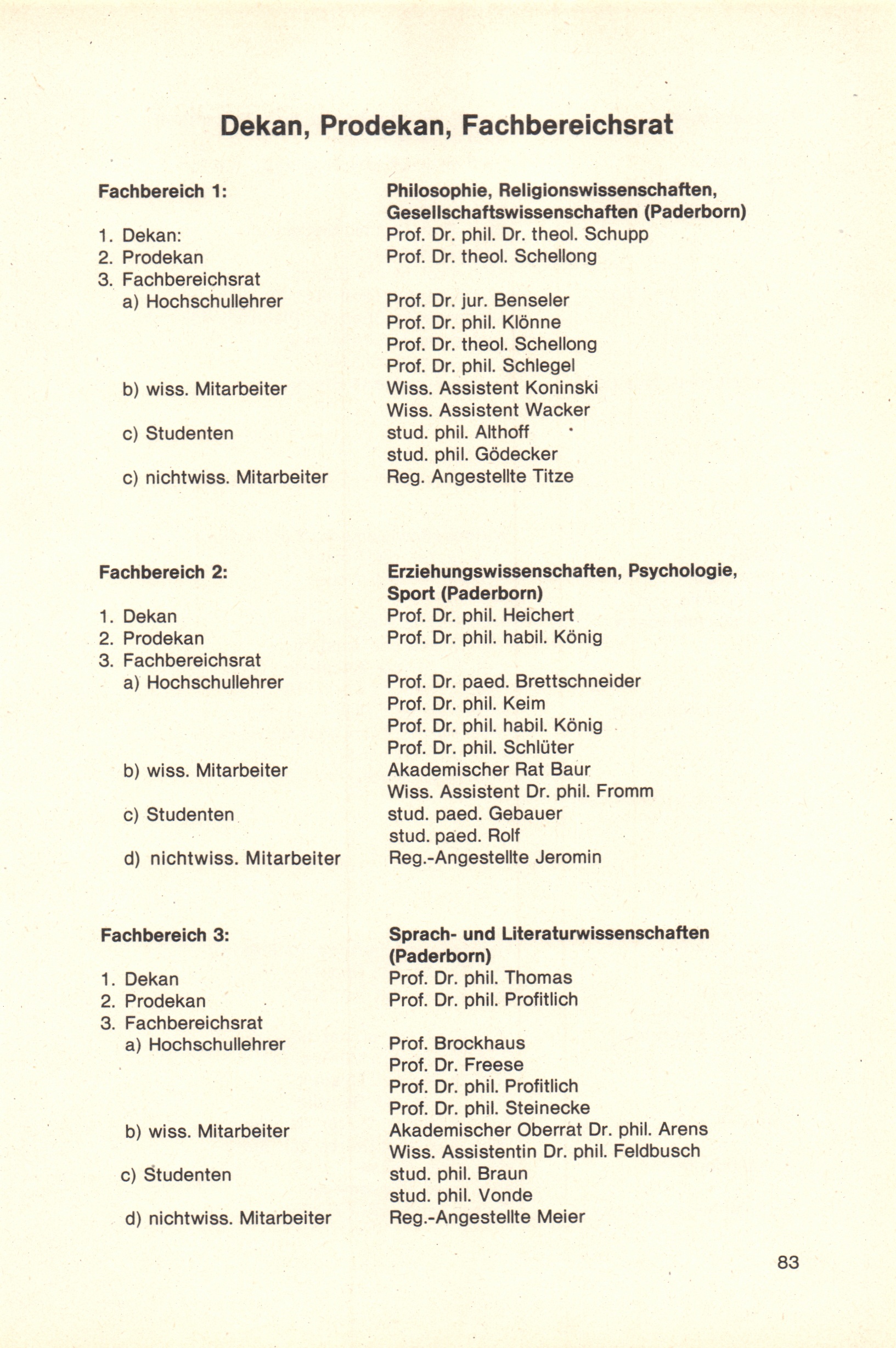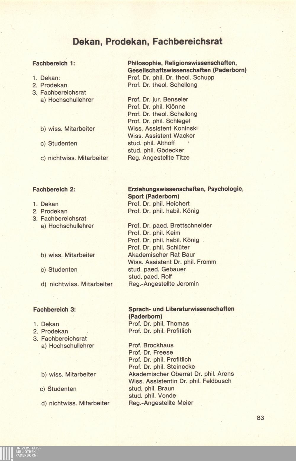 Dekan, Prodekan, Fachbereichsrat, Abteilungsleiter