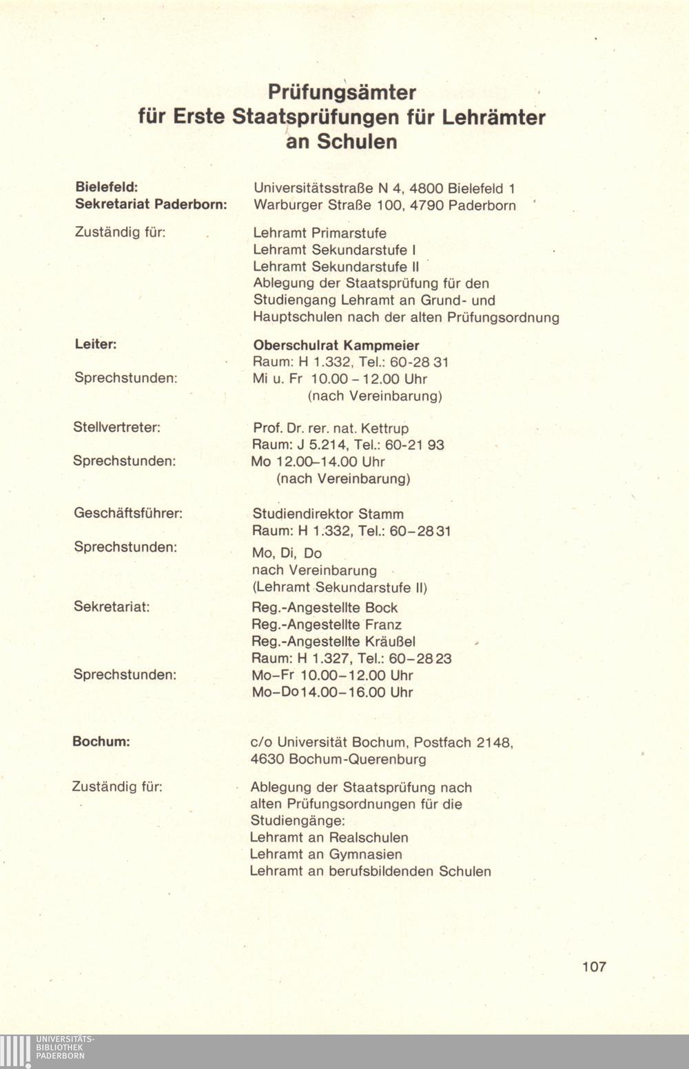 Personal- und Vorlesungsverzeichnis für die Universität Paderborn