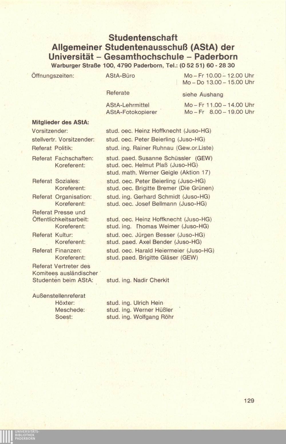 Personal- und Vorlesungsverzeichnis für die Universität Paderborn