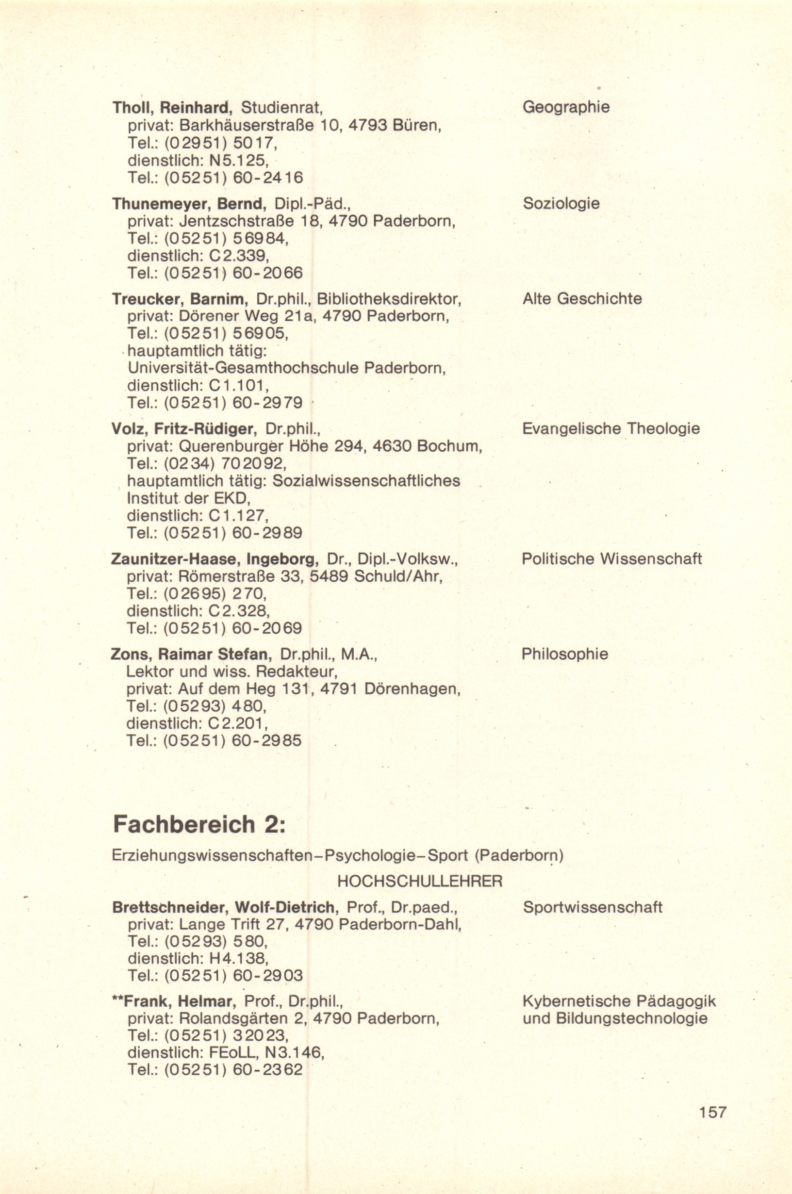 Fachbereich 2: Erziehungswissenschaften - Psychologie - Sport (Paderborn)