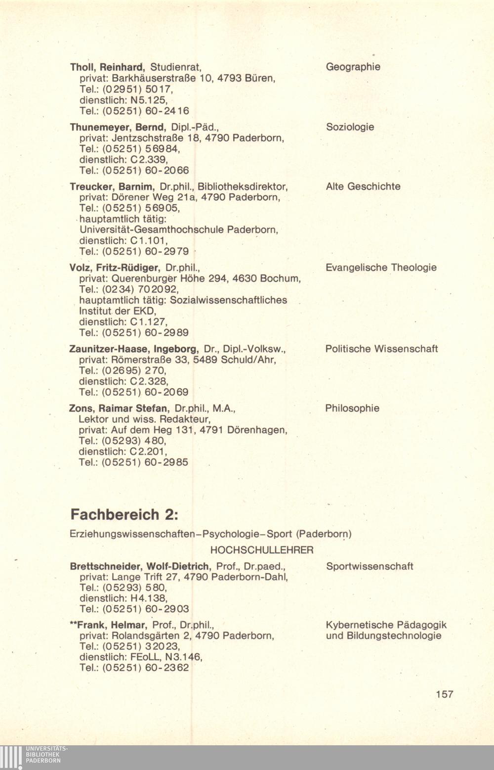 Personal- und Vorlesungsverzeichnis für die Universität Paderborn