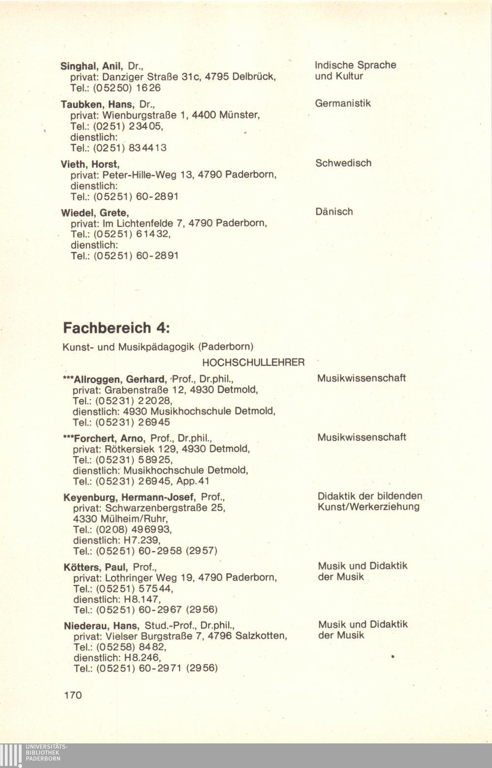 Personal- und Vorlesungsverzeichnis für die Universität Paderborn