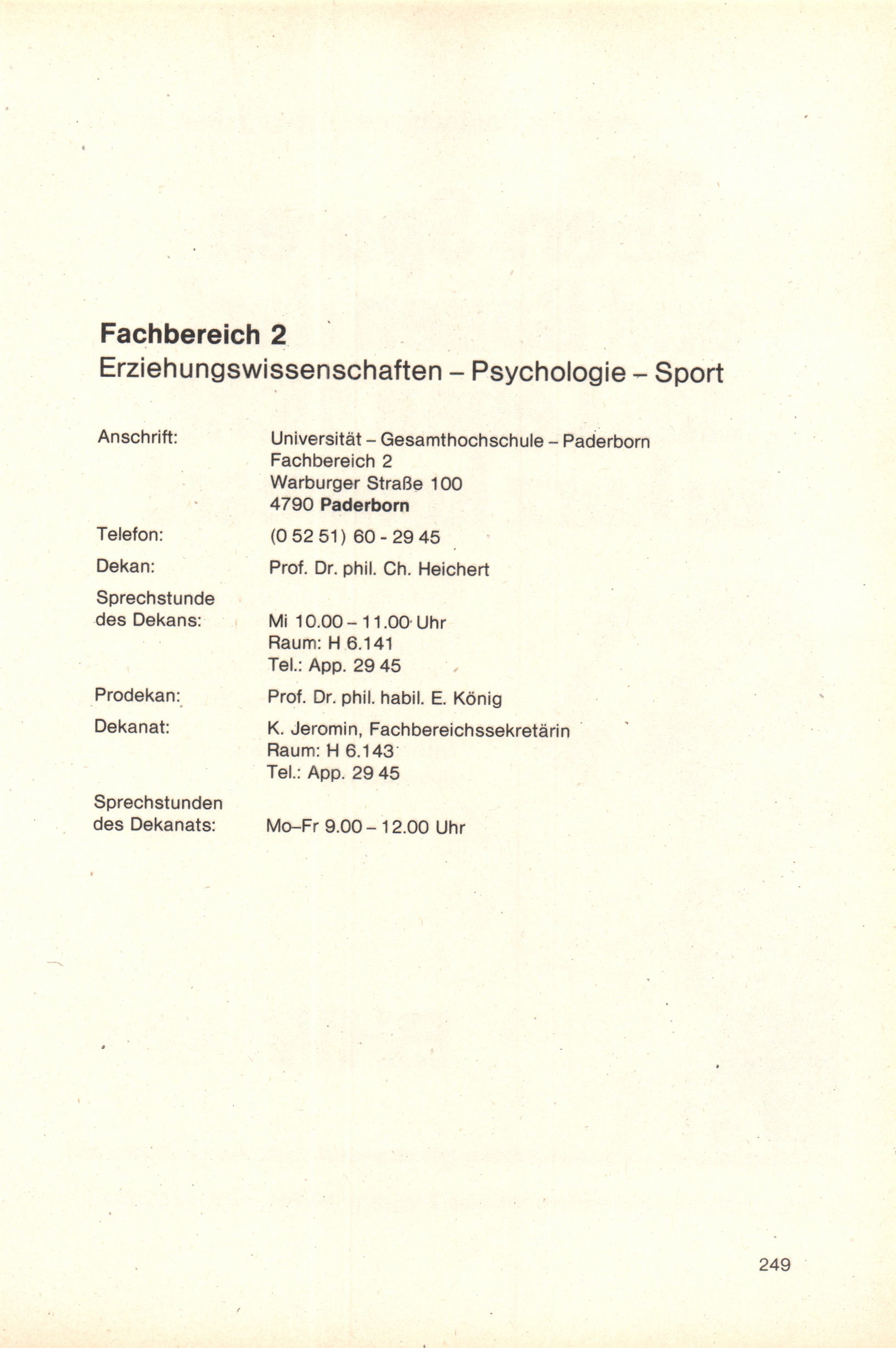 Fachbereich 2: Erziehungswissenschaften - Psychologie - Sport
